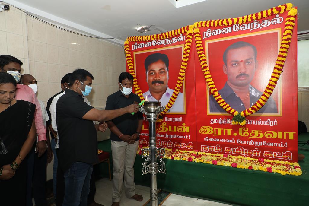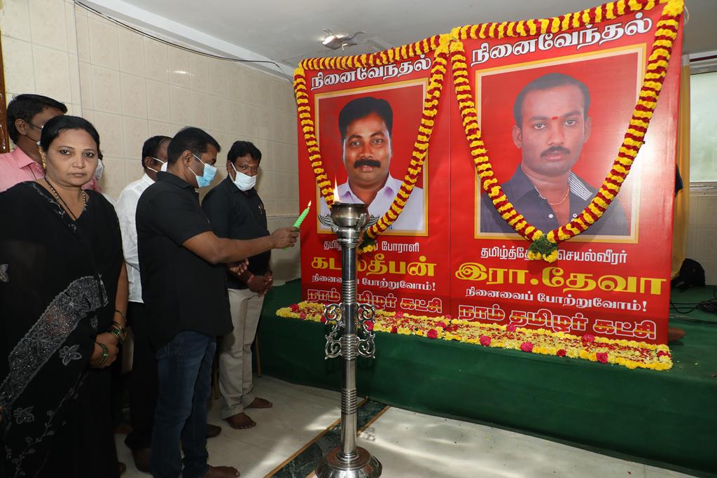 இந்நிகழ்விற்கு தலைமையேற்ற சீமான் அவர்கள், மலர்களால் அலங்கரிக்கப்பட்டிருந்த கடல்தீபன் மற்றும் தேவா ஆகியோரது திருவுருவப் படத்திற்கு முன்பு நினைவுச் சுடரேற்றி, மலர் வணக்கம் மட்டும் புகழ் வணக்கம் செலுத்தினார். உடன், நாம் தமிழர் கட்சியின் மாநில, மாவட்ட, தொகுதி நிர்வாகிகள் பலர் பங்கேற்றனர்.