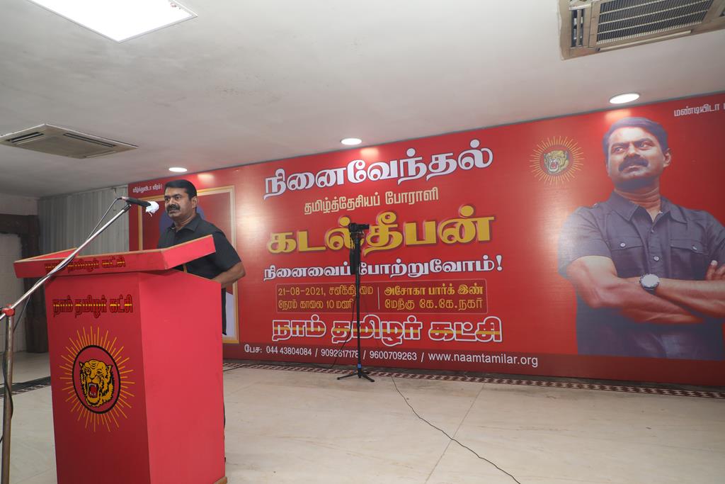 அண்மையில் மறைவெய்திய நாம் தமிழர் கட்சியின் மாநில ஒருங்கிணைப்பாளர், தமிழ்த்தேசியப் போராளி  வா.கடல்தீபன் மற்றும் மாணவர் பாசறை மாநிலச் செயலாளர், தமிழ்த்தேசிய செயல்வீரர் வழக்கறிஞர் இரா. தேவா ஆகியோரது நினைவைப் போற்றும் விதமாக 21-08-2021 அன்று, காலை 10 மணியளவில் சென்னை, மேற்கு கே. கே. நகரில் அமைந்துள்ள அசோகா பார்க் இன் அரங்கத்தில், தலைமை ஒருங்கிணைப்பாளர் சீமான் அவர்களின் தலைமையில் நினைவேந்தல் கூட்டம் நடைபெற்றது.