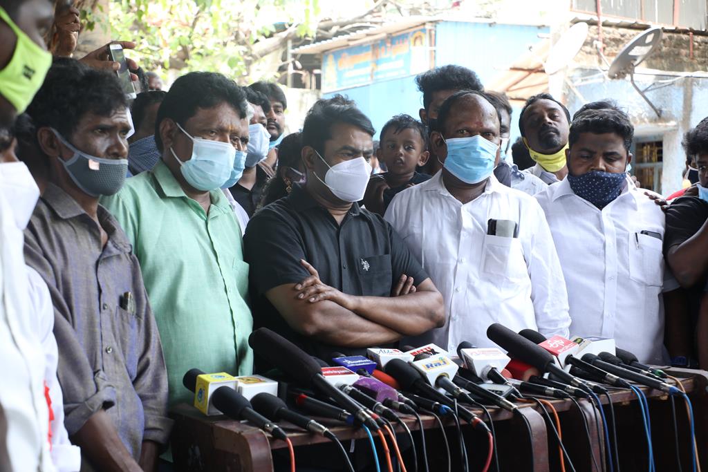 பின்னர் செய்தியாளர்களிடம் பேசுகையில், ஆளும் திமுக அரசின் அதிகாரப்போக்கினால், ஸ்மார்ட் சிட்டி என்ற பெயரில் தொன்றுதொட்டு வாழ்ந்துவந்த வசிப்பிடத்திலிருந்து ஆதித்தமிழ்க்குடியினரை, மக்களால் தேர்ந்தெடுக்கப்பட்ட அரசே அப்புறப்படுத்தும் கொடுஞ்செயலில் ஈடுபடுவதா என கேள்வியெழுப்பினார். மண்ணின் மைந்தர்களை ஆக்கிரமிப்பாளர்கள் என்று சொல்வதற்கு கண்டனம் தெரிவித்தார். பாதிக்கப்பட்ட மக்களின் உரிமைகள் நிலைநாட்டப்படும்வரை துணைநிற்பேன் என்றும் அரும்பாக்கத்தைச் சேர்ந்த பாதிக்கப்பட்ட மக்களுக்கு அவர்கள் வசிப்பிடங்களிலேயே நிரந்தர குடியிருப்புகளை ஏற்படுத்தி தருமாறு தமிழ்நாடு அரசை நாம் தமிழர் கட்சி சார்பாக வலியுறுத்துவதாகவும் தெரிவித்தார்.