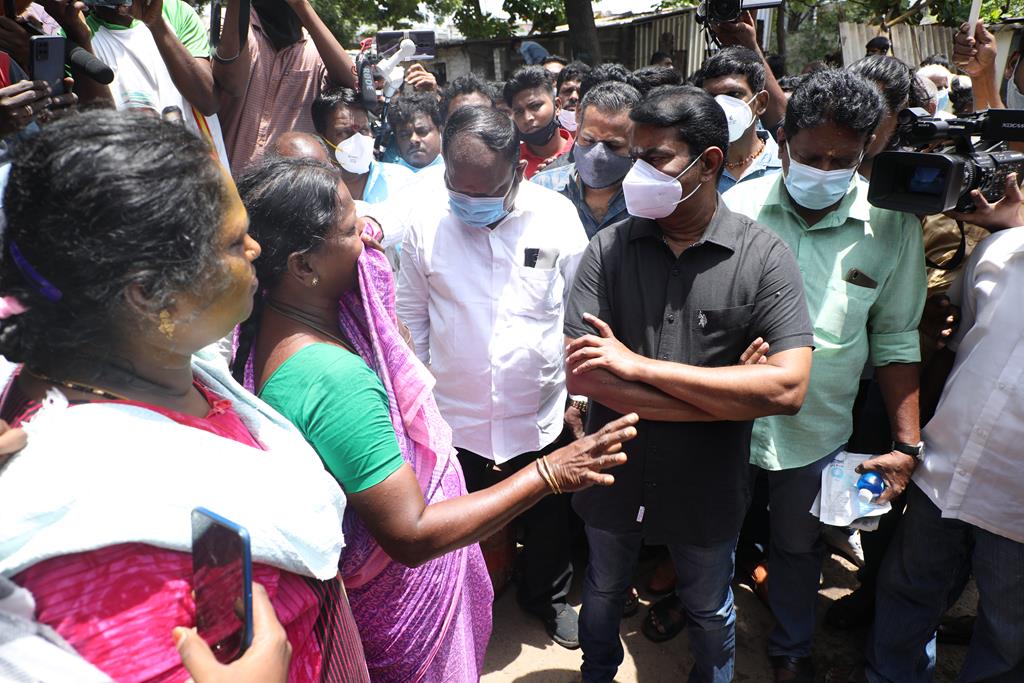 பின்னர் செய்தியாளர்களிடம் பேசுகையில், ஆளும் திமுக அரசின் அதிகாரப்போக்கினால், ஸ்மார்ட் சிட்டி என்ற பெயரில் தொன்றுதொட்டு வாழ்ந்துவந்த வசிப்பிடத்திலிருந்து ஆதித்தமிழ்க்குடியினரை, மக்களால் தேர்ந்தெடுக்கப்பட்ட அரசே அப்புறப்படுத்தும் கொடுஞ்செயலில் ஈடுபடுவதா என கேள்வியெழுப்பினார். மண்ணின் மைந்தர்களை ஆக்கிரமிப்பாளர்கள் என்று சொல்வதற்கு கண்டனம் தெரிவித்தார். பாதிக்கப்பட்ட மக்களின் உரிமைகள் நிலைநாட்டப்படும்வரை துணைநிற்பேன் என்றும் அரும்பாக்கத்தைச் சேர்ந்த பாதிக்கப்பட்ட மக்களுக்கு அவர்கள் வசிப்பிடங்களிலேயே நிரந்தர குடியிருப்புகளை ஏற்படுத்தி தருமாறு தமிழ்நாடு அரசை நாம் தமிழர் கட்சி சார்பாக வலியுறுத்துவதாகவும் தெரிவித்தார்.