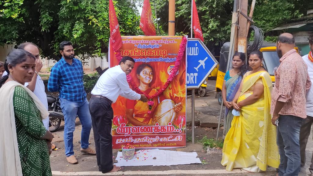 28-08-2021 புதுச்சேரி நாம் தமிழர்கட்சி தட்டாஞ்சாவடி தொகுதி சார்பாக பாக்கமுடையான் பேட் செல்வ விநாயகர் கோவில் அருகே வீரதமிழச்சி  செங்கொடி அவர்களுக்கு வீரவணக்க நிகழ்வு நடைபெற்றது.