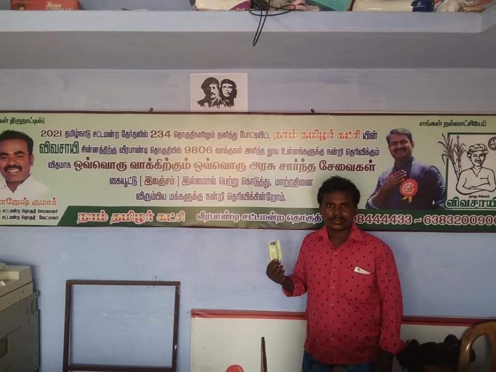 வீரபாண்டி தொகுதி நாம் தமிழர் கட்சி சார்பாக  அரசு சார்ந்த சேவைகள் ” திட்டத்தின் கீழ் 15 குடும்பங்களுக்கு புதிய குடும்ப அட்டை பெற்றுத்தரும் நிகழ்வு நடைபெற்றது.