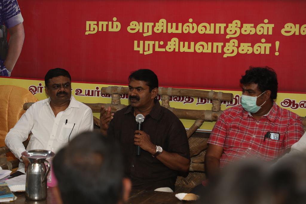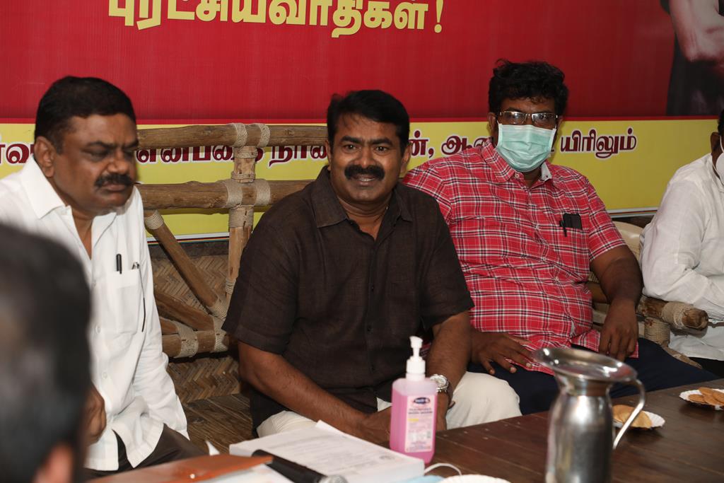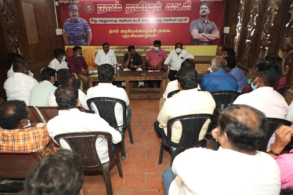 எதிர்வரவிருக்கும் 9 மாவட்டங்களுக்கான ஊரக உள்ளாட்சித் தேர்தலையொட்டி நாம் தமிழர் கட்சியின் தலைமை ஒருங்கிணைப்பாளர் சீமான் அவர்களின் தலைமையில் இன்று 03-09-2021 கட்சித் தலைமை அலுவலகத்தில் நடைபெற்ற மாவட்டக் கலந்தாய்வுக்கூட்டத்தில் செங்கல்பட்டு மற்றும் காஞ்சிபுரம் மாவட்டங்களுக்குட்பட்ட அனைத்து மாவட்ட மற்றும் தொகுதித் தலைவர்-செயலாளர்களும் பங்கேற்றனர். மாநிலக் கட்டமைப்புக் குழுவினர் முன்னிலை வகித்தனர். இக்கலந்தாய்வில் ஊரக உள்ளாட்சித் தேர்தலுக்கு அணியமாவது குறித்தும் வேட்பாளர்கள் தேர்வு உள்ளிட்ட தேர்தல் களப்பணிகள் குறித்தும் கலந்தாய்வு செய்யப்பட்டது.