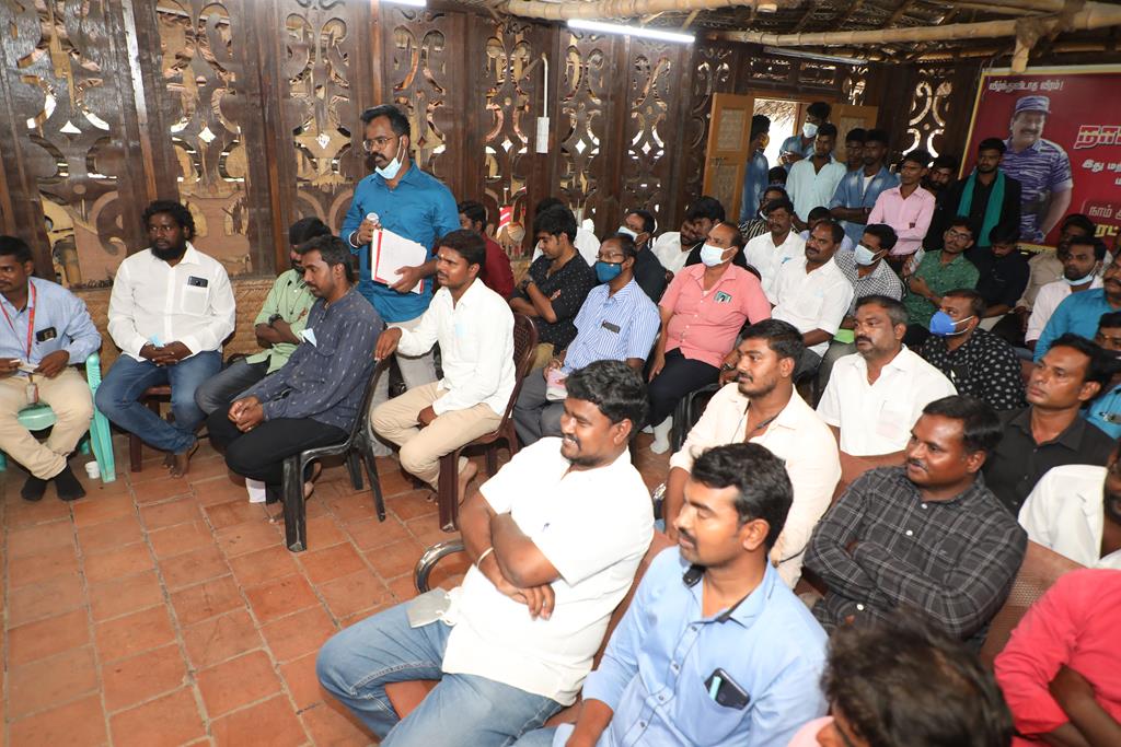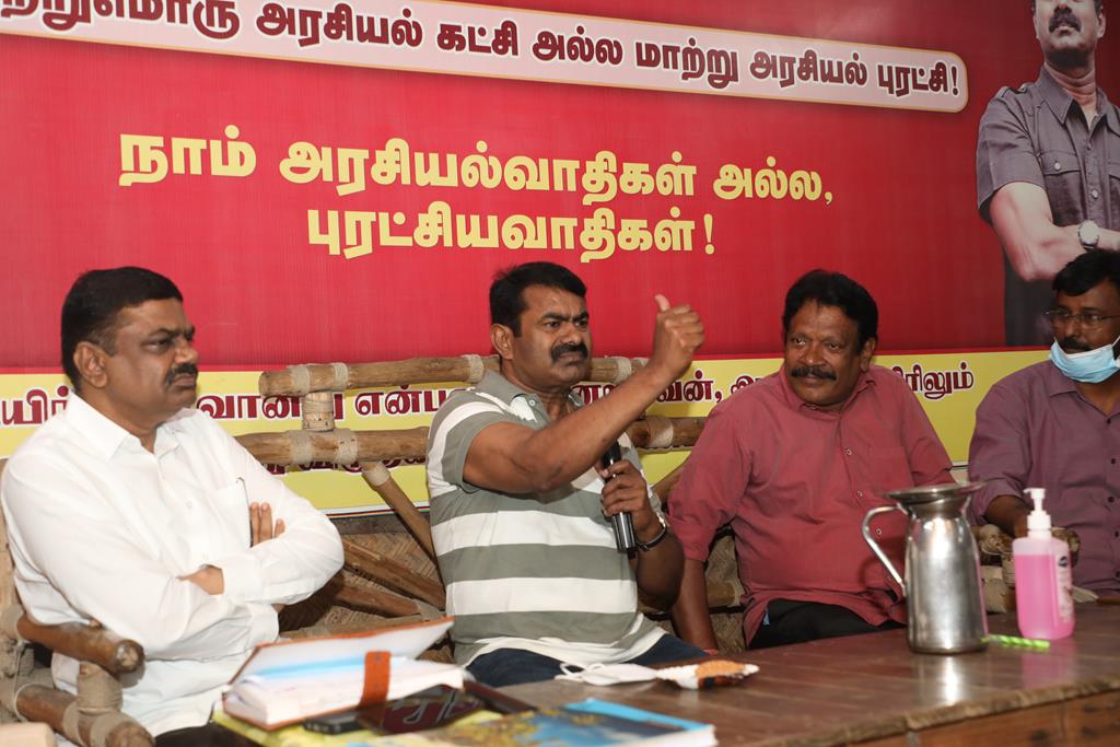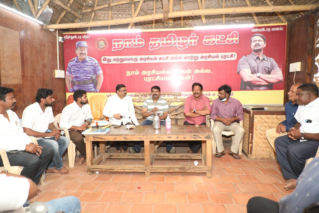 எதிர்வரவிருக்கும் 9 மாவட்டங்களுக்கான ஊரக உள்ளாட்சித் தேர்தலையொட்டி நாம் தமிழர் கட்சியின் தலைமை ஒருங்கிணைப்பாளர் சீமான் அவர்களின் தலைமையில் இன்று 04-09-2021 கட்சித் தலைமை அலுவலகத்தில் நடைபெற்ற மாவட்டக் கலந்தாய்வுக்கூட்டத்தில் இராணிப்பேட்டை, வேலூர் மற்றும் திருப்பத்தூர் மாவட்டங்களுக்குட்பட்ட அனைத்து மாவட்ட மற்றும் தொகுதித் தலைவர்-செயலாளர்களும் பங்கேற்றனர். மாநிலக் கட்டமைப்புக் குழுவினர் முன்னிலை வகித்தனர். இக்கலந்தாய்வில் ஊரக உள்ளாட்சித் தேர்தலுக்கு அணியமாவது குறித்தும் வேட்பாளர்கள் தேர்வு உள்ளிட்ட தேர்தல் களப்பணிகள் குறித்தும் கலந்தாய்வு செய்யப்பட்டது.