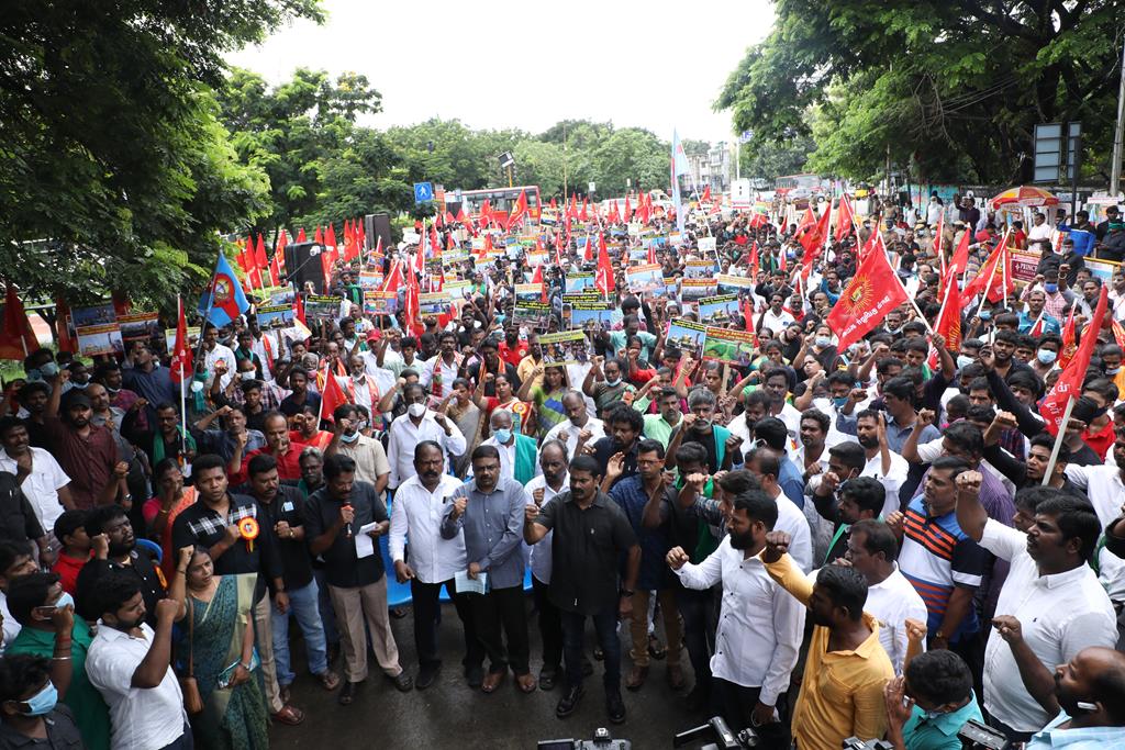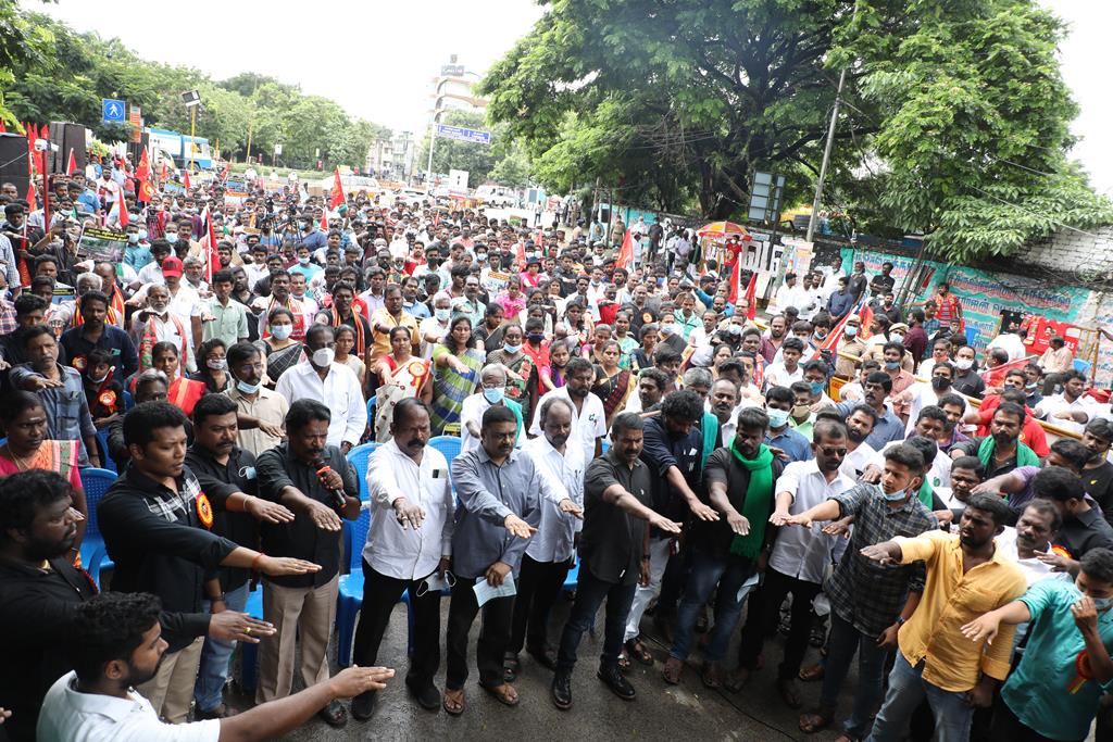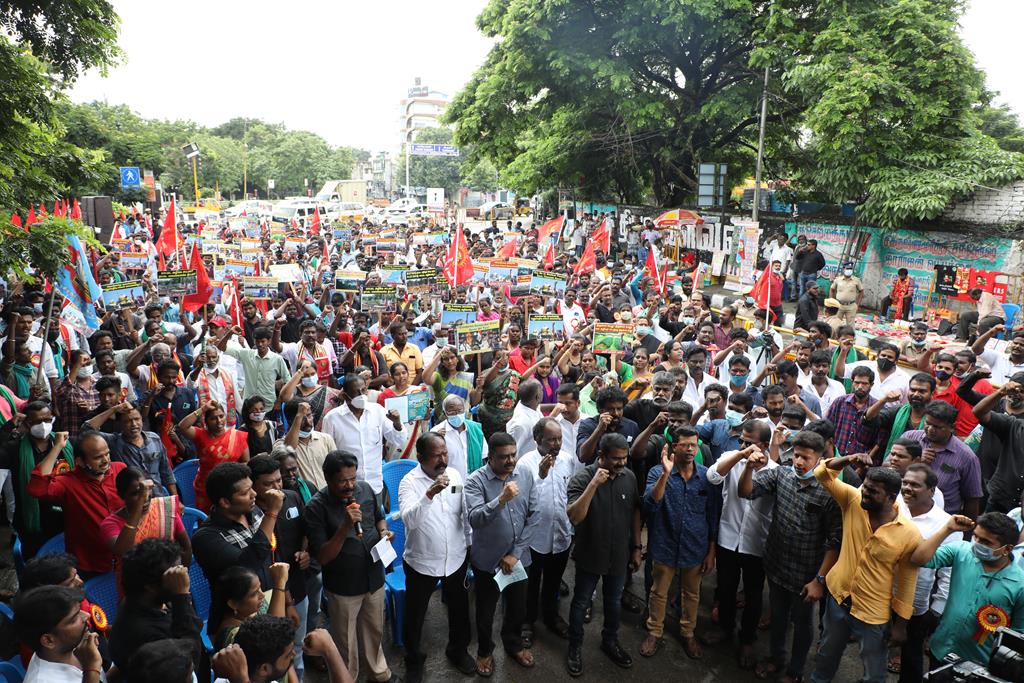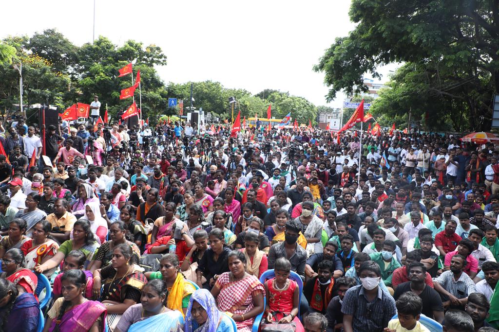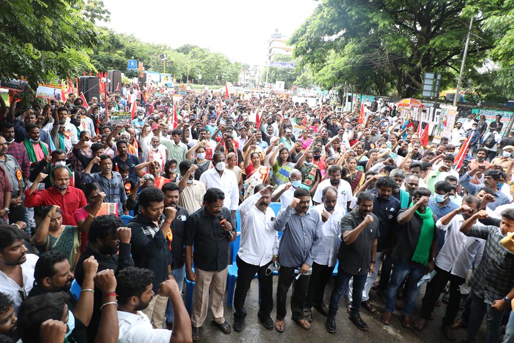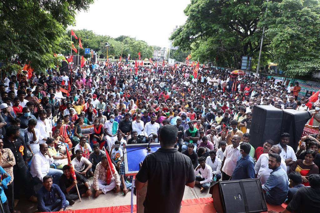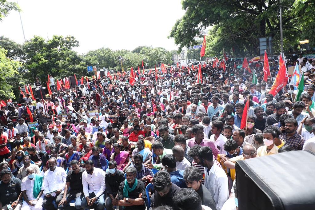 இலங்கை கடற்படையால் தமிழ்நாட்டு மீனவர்கள் தொடர்ச்சியாகப் படுகொலை செய்யப்படுவதைக் கண்டித்தும், கூடங்குளத்தில் அணுக்கழிவு மையம் அமைப்பதற்கு எதிர்ப்புத் தெரிவித்தும், வனப்பாதுகாப்பு சட்டத்திருத்த வரைவு – 2021ஐ திரும்பப்பெற வலியுறுத்தியும் இந்திய ஒன்றிய அரசுக்கெதிராக 31.10.21 அன்று சென்னை, வள்ளுவர் கோட்டத்தில் நாம் தமிழர் கட்சி சார்பாக தலைமை ஒருங்கிணைப்பாளர் செந்தமிழன் சீமான் அவர்கள் தலைமையில் மாபெரும் கண்டன ஆர்ப்பாட்டம் நடைபெற்றது.