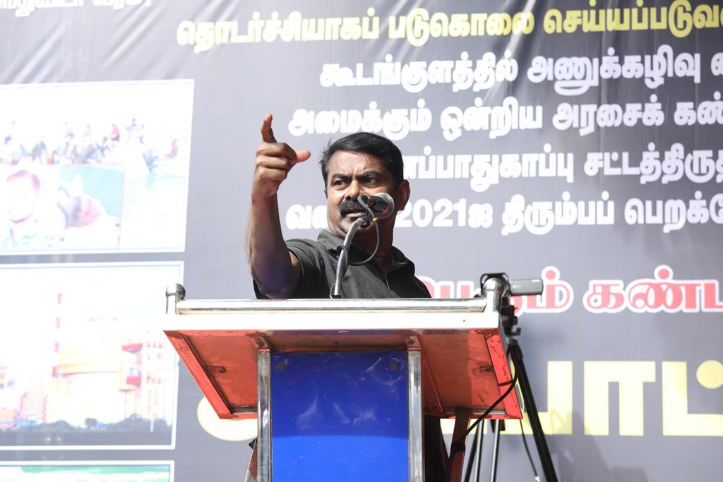 அணுக்கழிவு மையத்தை இடிந்தகரையிலேயே வைக்கலாம் என இந்திய ஒன்றிய அரசு கூறிவிட்டது. நாம் தமிழர் கட்சியைத் தவிர்த்து எந்தக்கட்சி அதனை எதிர்த்துக்களத்தில் நிற்கிறது? எடியூரப்பா ஆட்சியின்போது, அணுக்கழிவு மையத்தை கோலார் தங்கவயலில் வைக்கலாம் என ஒரு செய்தி கசிந்தபோது, அதனையெதிர்த்து அம்மாநிலத்தின் எல்லாக் கட்சிகளும் திரண்டு, கன்னட மாநிலத்தின் ஒற்றைக்கொடியை ஏந்திப் போராட்டம் செய்து அதனைத் தடுத்து நிறுத்தியது. அணுக்கழிவு மையம் அமைக்கப்படுவது குறித்தான திமுகவின் நிலைப்பாடென்ன? திமுகவின் சுற்றுச்சூழல் அணி என்ன செய்கிறது? எதுவும் பேசவில்லை!