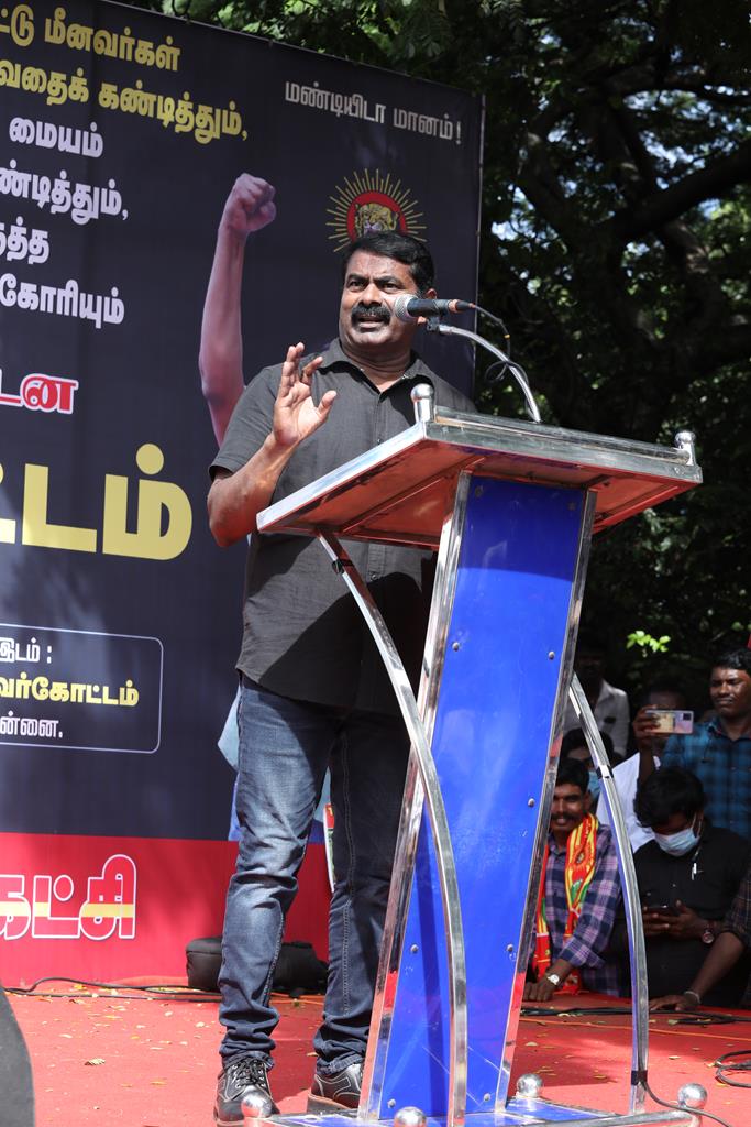 இலங்கை பாராளுமன்ற உறுப்பினர் சுமந்திரன் தமிழர்களை வைத்துக்கொண்டு ஒரு ஆர்ப்பாட்டம் நடத்தி, தமிழக மீனவர்கள் எல்லைத்தாண்டி வந்து அவர்களது மீன்களைப் பிடித்துச் செல்வதாகக் குற்றஞ்சாட்டுகிறார். எல்லைக்குள்ளே நுழைய முடியாது, எல்லைக்கு முன்பே எங்களைத் தாக்கி அழிக்கிறபோது எப்படி அவர்களது மீன்களை எங்களால் பிடிக்க முடியும்? இது எவ்வளவு பெரிய பொய்? இந்தியாவில், தமிழகத்தில் எவ்வளவோ அரசியல் தலைவர்கள் இருக்கிறபோது அதில் என்னை மட்டும் குறிப்பிட்டுப் பேசுகிறார். ஏனென்றால், அவருக்கு அவ்வாறாகச் சொல்லிக் கொடுக்கப்பட்டிருக்கிறது. அவர்கள் இங்குள்ள தமிழ் மீனவனுக்கும், இலங்கையிலுள்ள தமிழ் மீனவனுக்குமே சண்டை என்றுகாட்ட நினைக்கிறார்கள். 850க்கும் மேற்பட்ட தமிழக மீனவர்களை அங்கு வாழும் தமிழ் மீனவர்களாகக் கொன்றார்கள்? இலங்கை இராணுவம்தானே கொன்றது? ஆனால், அதனை மறைத்து திட்டமிட்டு ஒரு நாடகத்தை அரங்கேற்றுகிறது இலங்கை அரசு. அதற்கு இந்திய அரசும் முழுவதுமாகத் துணைபோகிறது. தமிழ்நாடு அரசு அதனைத் தட்டிக்கேட்காது வேடிக்கைப் பார்க்கிறது. நான் கேட்பதைக் கேட்டிருக்க வேண்டியது ஐயா ஸ்டாலின்தான்! ஆனால், அவர் கேட்கவில்லை.