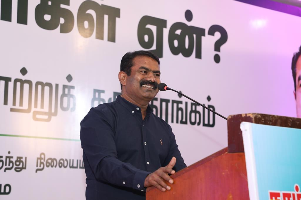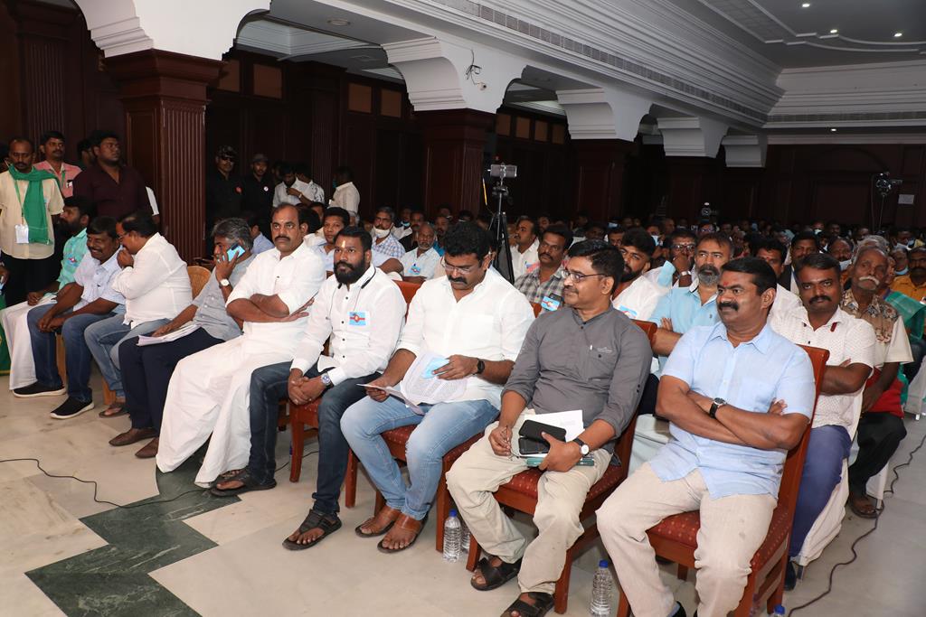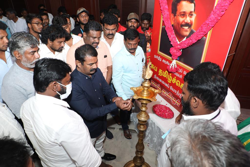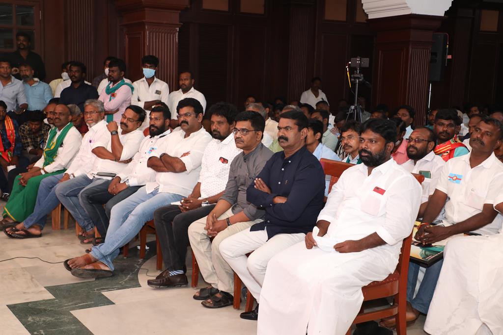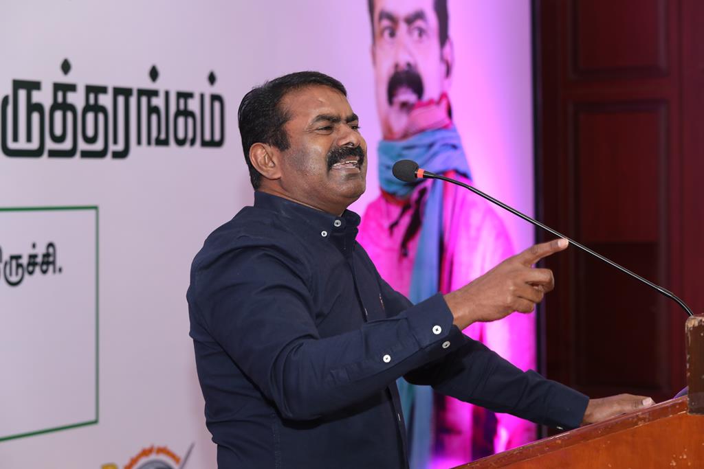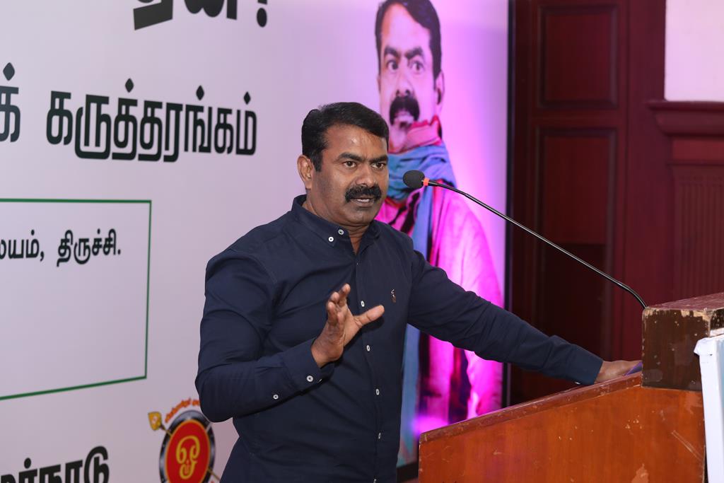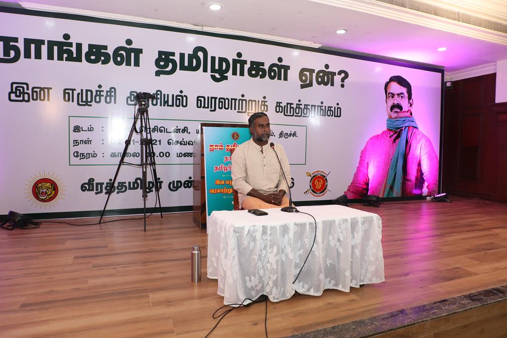 வீரத்தமிழர் முன்னணி நடத்திய நாங்கள் தமிழர்கள் ஏன்? – இன எழுச்சி அரசியல் வரலாற்றுக் கருத்தரங்கம், நாம் தமிழர் கட்சியின் தலைமை ஒருங்கிணைப்பாளர் சீமான் அவர்களின் தலைமையில் 02-11-2021 அன்று காலை 10 மணியளவில் திருச்சி நடுவண் பேருந்து நிலையம் அருகில் அமைந்துள்ள ப்ரீஸ் தங்கும் விடுதி அரங்கில் இரண்டு அமர்வுகளைக் கொண்ட முழு நாள் நிகழ்வாக நடைபெற்றது.