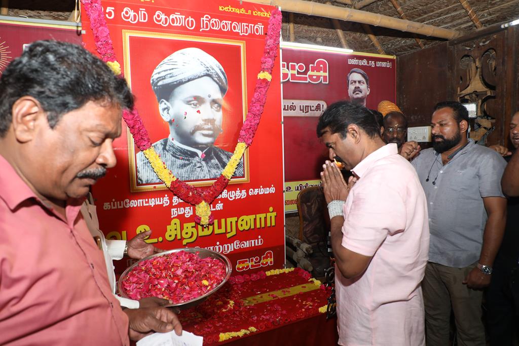 அடிமைப்பட்டு கிடந்த தாய்மண்ணின் விடுதலைக்காக தனது சொத்துக்களையெல்லாம் இழந்து செக்கிழுத்த செம்மல், ஆங்கில ஏகாதிபத்தியத்திற்கு எதிராக கப்பலோட்டிய தமிழறிஞர், நமது பாட்டன் வ.உ.சிதம்பரனார் அவர்களின் 85ஆம் ஆண்டு நினைவுநாளையொட்டி இன்று 18-11-2021 வியாழக்கிழமையன்று, காலை 10 மணியளவில் நாம் தமிழர் கட்சியின் தலைமை அலுவலகத்தில், தலைமை ஒருங்கிணைப்பாளர் சீமான் அவர்களின் தலைமையில் மலர்வணக்க நிகழ்வு நடைபெற்றது.