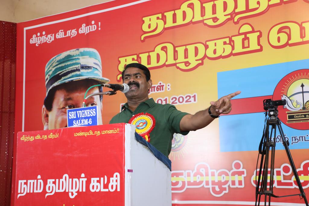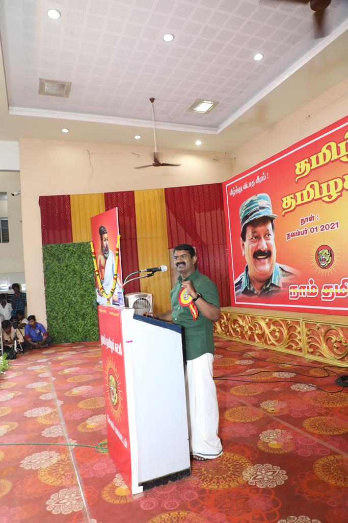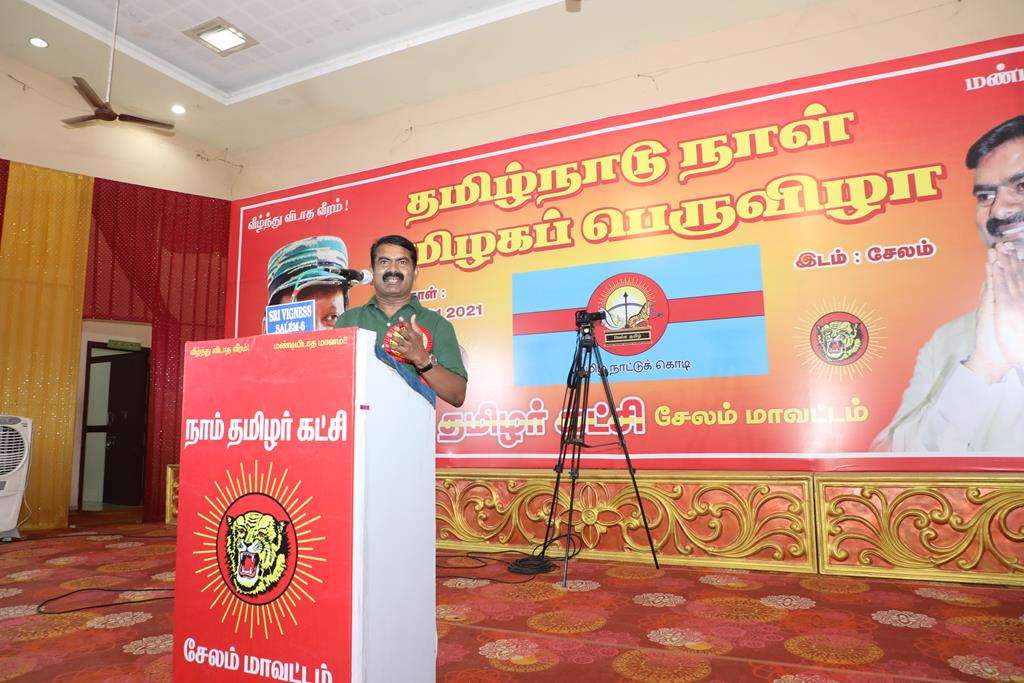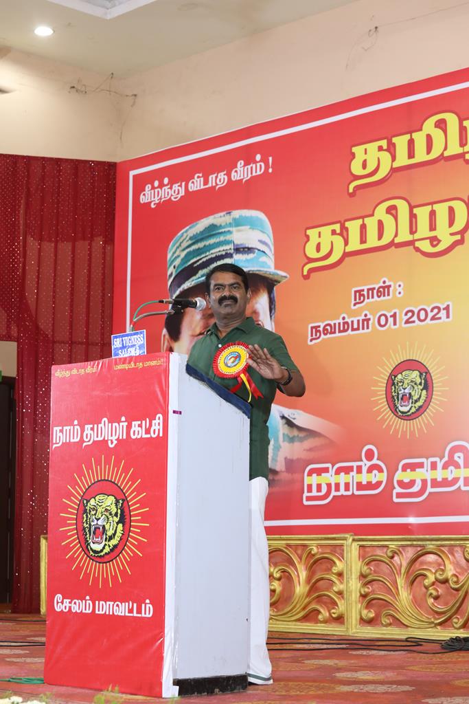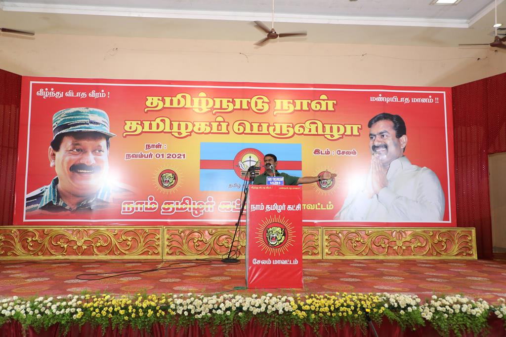 உலகெங்கும் பரவி வாழும் தமிழர்களுக்குத் தாயகமாக விளங்கும் தமிழ்நாடு மொழிவாரியாகப் பிரிக்கப்பட்டுத் தனிப்பெருநிலமாக அறிவிக்கப்பட்ட திருநாளான நவம்பர் 01 தமிழ்நாடு நாளினை மிகச்சிறப்பாக கொண்டாடும் விதமாக, நாம் தமிழர் கட்சி சார்பாக 01-11-2021 அன்று, பிற்பகல் 03 மணியளவில் சேலம் அம்மாபேட்டை, காமராசர் நகர் காலனி, கடலூர் முதன்மை சாலையில் அமைந்துள்ள கொங்கு வெள்ளாளர் கவுண்டர் திருமண மண்டபத்தில், தலைமை ஒருங்கிணைப்பாளர் செந்தமிழன் சீமான் அவர்களின் தலைமையில், தமிழ்நாடு நாள் – தமிழகப் பெருவிழா நடைபெற்றது.