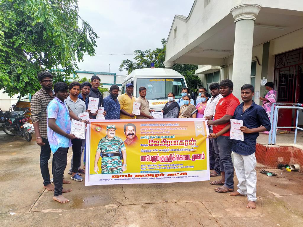 திருவெறும்பூர் சட்டமன்ற தொகுதி சார்பாக தமிழ்தேசிய தலைவர் மேதகு. வே.பிரபாகரன் அவர்களின் 67ம் ஆண்டு அகவை திருநாளை முன்னிட்டு துவாக்குடி அரசு மருத்துவமனையில் மாபெரும் குருதிக்கொடை (இரத்த தானம்) முகாம் தொகுதி செயலாளர் திரு. வெ.சோழசூரன் அவர்கள் முன்னிலையில் மிகச்சிறப்பாக நடைபெற்றது.