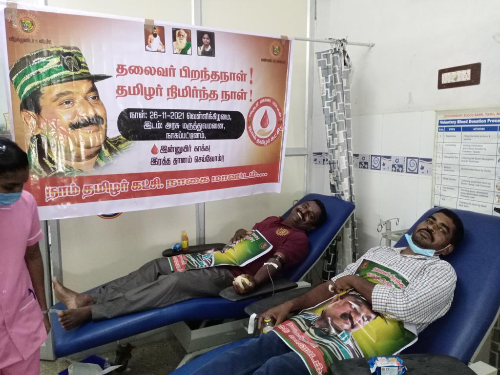 நாகப்பட்டினம் பாராளுமன்ற தொகுதி வேதாரண்யம் சட்டமன்றத் தொகுதி சார்பாக தமிழ் தேசிய தலைவரின் பிறந்தநாளை முன்னிட்டு 26/11/21 அன்று நாகை அரசு மருத்துவமனையில் அளிக்கப்பட்டது