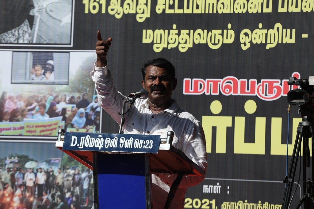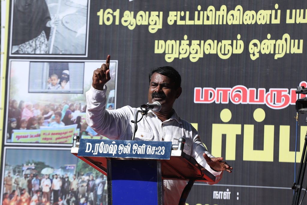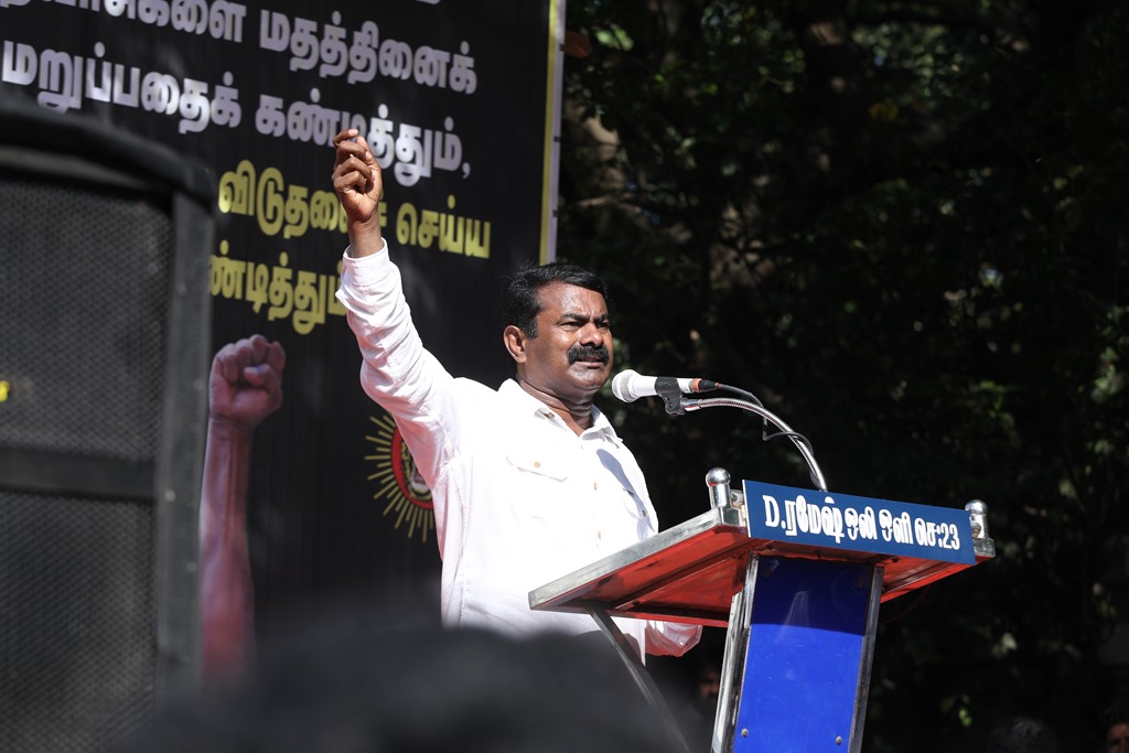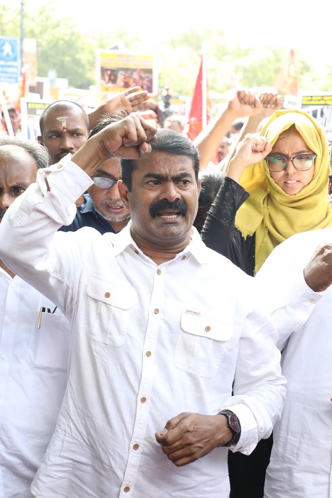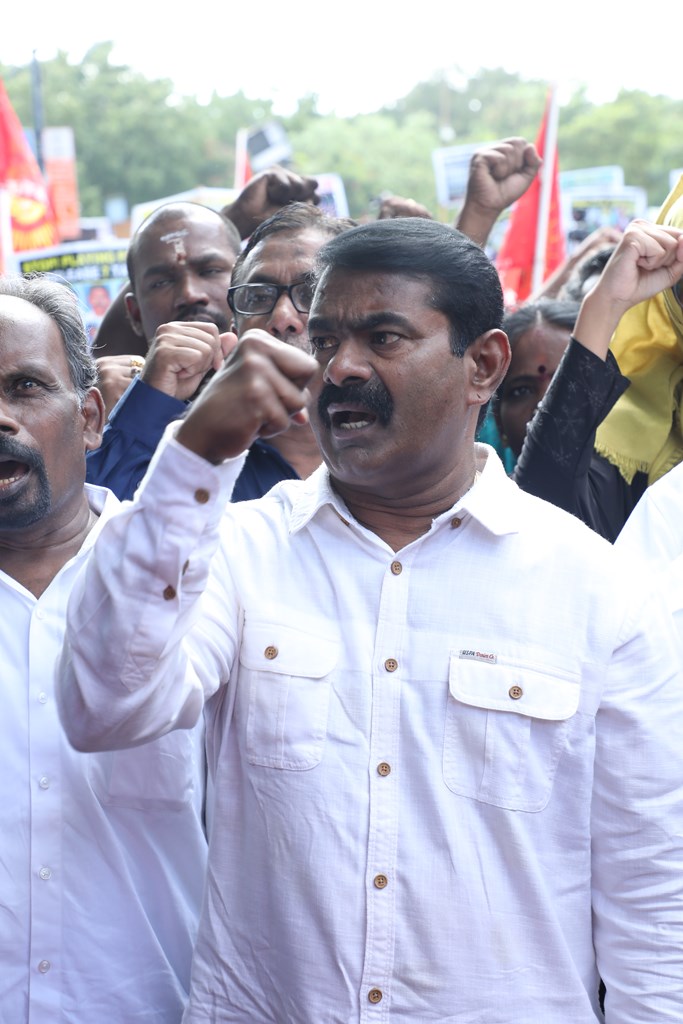நிகழ்வின் இறுதியாக, நாம் தமிழர் கட்சியின் தலைமை ஒருங்கிணைப்பாளர் சீமான் அவர்கள் கண்டனப் பேருரையாற்றினார்.