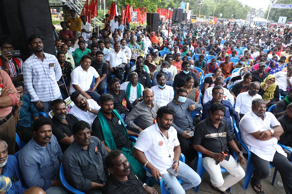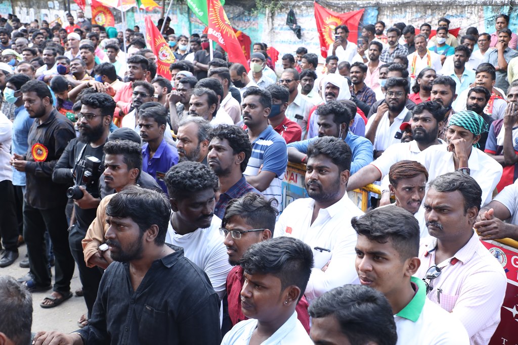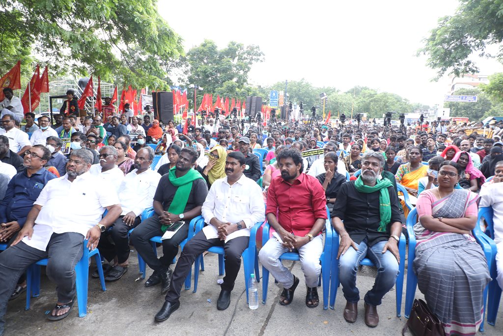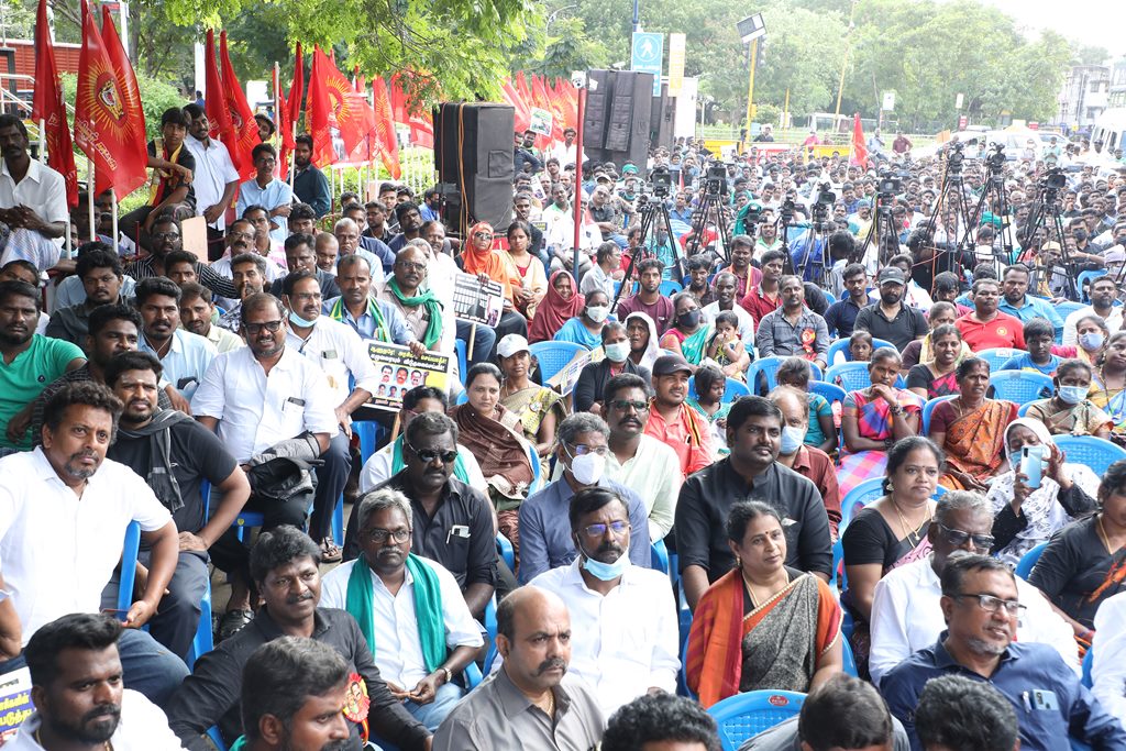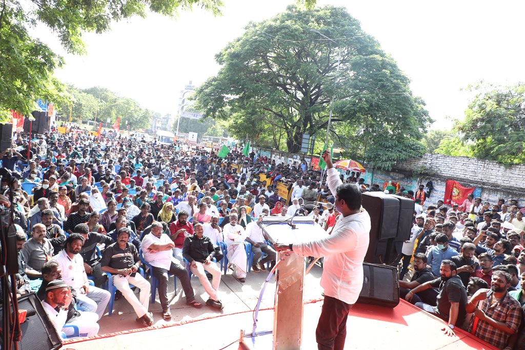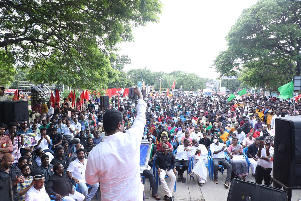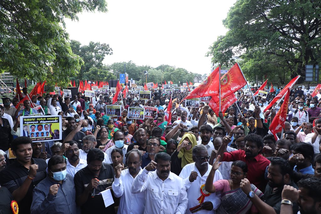 20 ஆண்டுகளுக்கும் மேலாகக் கொடுஞ்சிறைவாசம் அனுபவித்து வரும் இசுலாமிய சிறைவாசிகளை மதத்தினைக் காரணமாகக் காட்டி விடுதலை செய்ய முடியாது என அரசாணை வெளியிட்டுள்ள திமுக அரசின் மதவாதப்போக்கைக் கண்டித்தும், ராஜீவ் காந்தி கொலை வழக்கில் சிக்குண்டு 30 ஆண்டுகளாகச் சிறைக்கொட்டடியில் வாடும் ஏழு தமிழர்களையும் விடுதலை செய்ய 161வது சட்டப்பிரிவின்படி மாநில அரசுக்கே அதிகாரமிருக்கும்போது குடியரசுத்தலைவருக்குக் கடிதமெழுதி மாநிலத் தன்னுரிமையையும், தன்னாட்சியையும் காவுகொடுத்திருக்கும் திமுக அரசின் வஞ்சகப் போக்கைக் கண்டித்தும், 12.12.2021 அன்று காலை 10 மணியளவில், சென்னை – வள்ளுவர் கோட்டத்தில் நாம் தமிழர் கட்சி ஒருங்கிணைத்த மாபெரும் கண்டன ஆர்ப்பாட்டம் நடைபெற்றது.