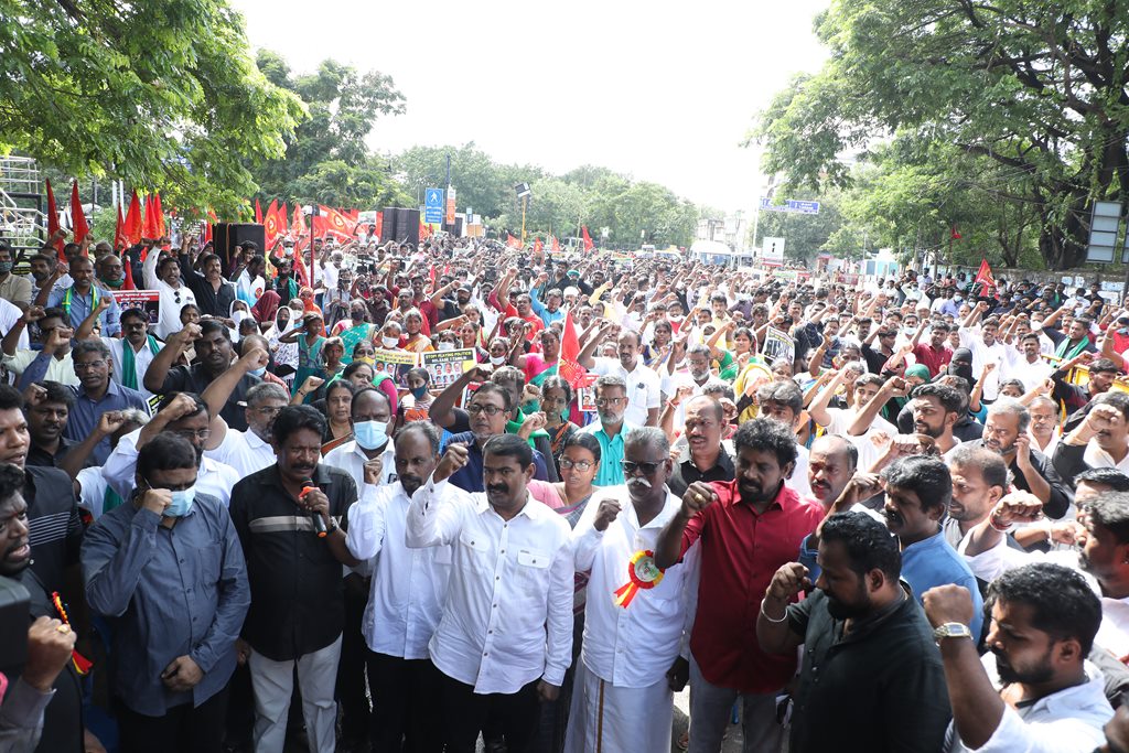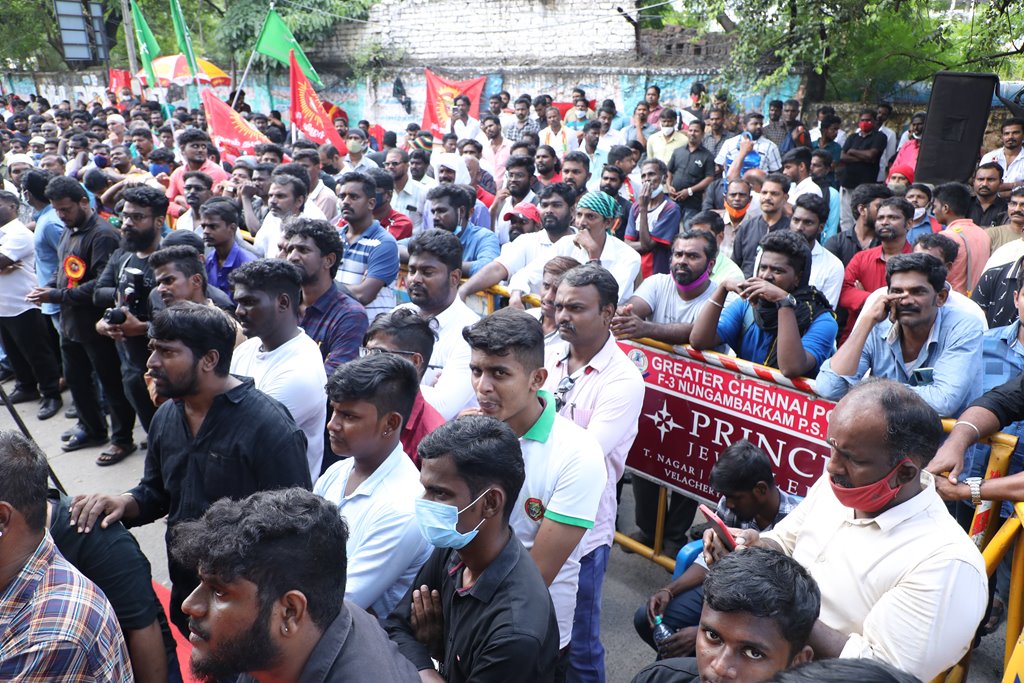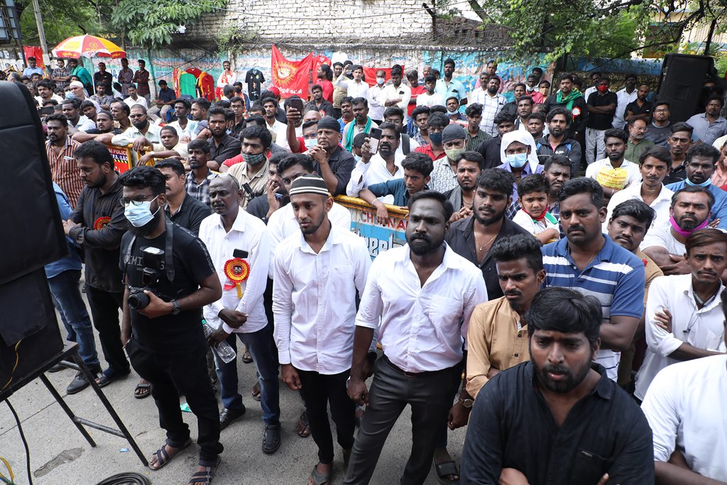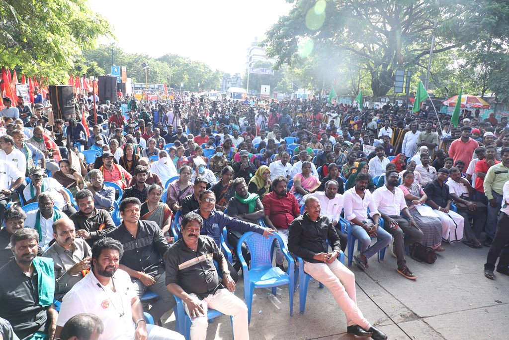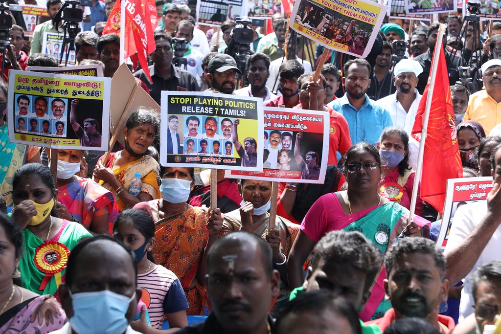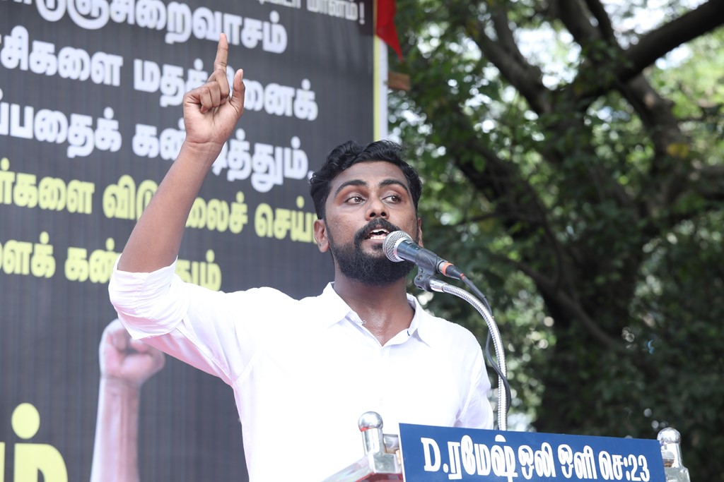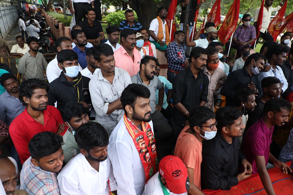 20 ஆண்டுகளுக்கும் மேலாகக் கொடுஞ்சிறைவாசம் அனுபவித்து வரும் இசுலாமிய சிறைவாசிகளை மதத்தினைக் காரணமாகக் காட்டி விடுதலை செய்ய முடியாது என அரசாணை வெளியிட்டுள்ள திமுக அரசின் மதவாதப்போக்கைக் கண்டித்தும், ராஜீவ் காந்தி கொலை வழக்கில் சிக்குண்டு 30 ஆண்டுகளாகச் சிறைக்கொட்டடியில் வாடும் ஏழு தமிழர்களையும் விடுதலை செய்ய 161வது சட்டப்பிரிவின்படி மாநில அரசுக்கே அதிகாரமிருக்கும்போது குடியரசுத்தலைவருக்குக் கடிதமெழுதி மாநிலத் தன்னுரிமையையும், தன்னாட்சியையும் காவுகொடுத்திருக்கும் திமுக அரசின் வஞ்சகப் போக்கைக் கண்டித்தும், 12.12.2021 அன்று காலை 10 மணியளவில், சென்னை – வள்ளுவர் கோட்டத்தில் நாம் தமிழர் கட்சி ஒருங்கிணைத்த மாபெரும் கண்டன ஆர்ப்பாட்டம் நடைபெற்றது.