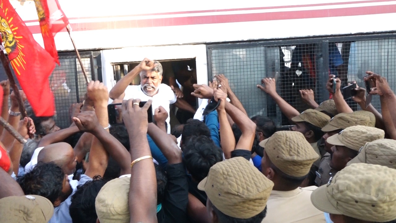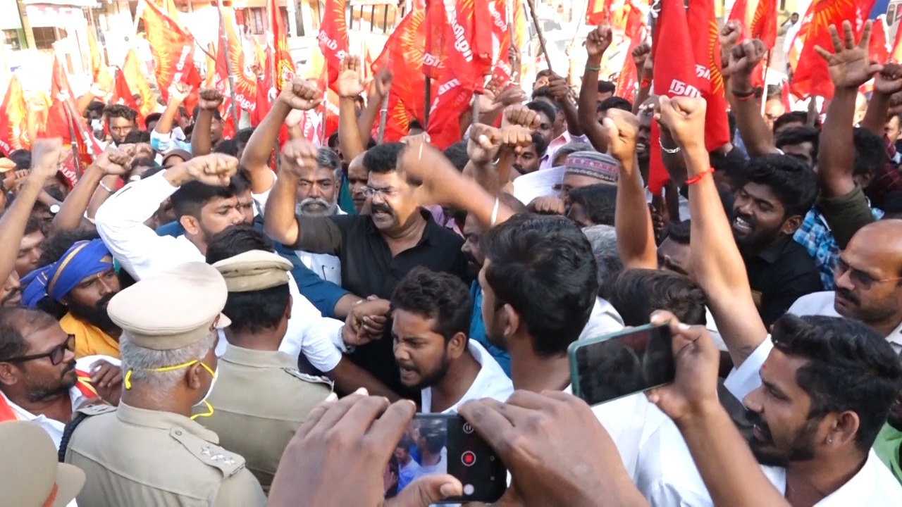 நடைபெற்றது ஆர்ப்பாட்டத்தில் நாம்தமிழர் கட்சியின் மாநில ஒருங்கினைப்பாளர் வெற்றிகுமரன் மற்றும் மாநில ஒருங்கினைப்பாளர் ஹுமாயுன் கபீர் உட்பட 300க்கு மேற்பட்ட நாம் தமிழர் கட்சி உறவுகள் கைது செய்யப்பட்டனர்..