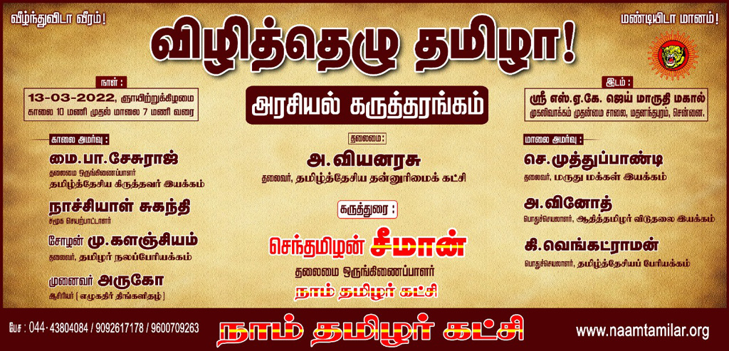 நாள்: 13/03/2022 ஞாயிற்றுக்கிழமை (காலை 10 மணிமுதல் மாலை 07 மணி வரை)