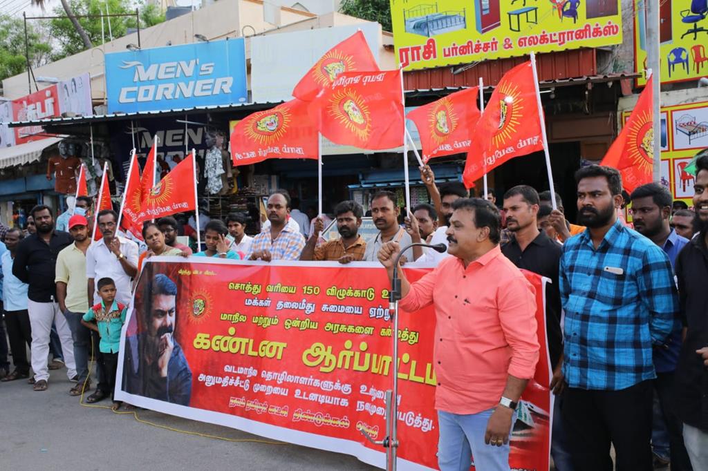 திண்டுக்கல் தொகுதி 18-04-2022 ஆம் தேதி திங்கட்கிழமை மாலை 5.00 மணிக்கு திண்டுக்கல் மாநகராட்சி மணிக்கூண்டு அருகில் சொத்து வரி உயர்வு மற்றும் வடமாநில தொழிலாளர்கள் தமிழக காவலர்களை