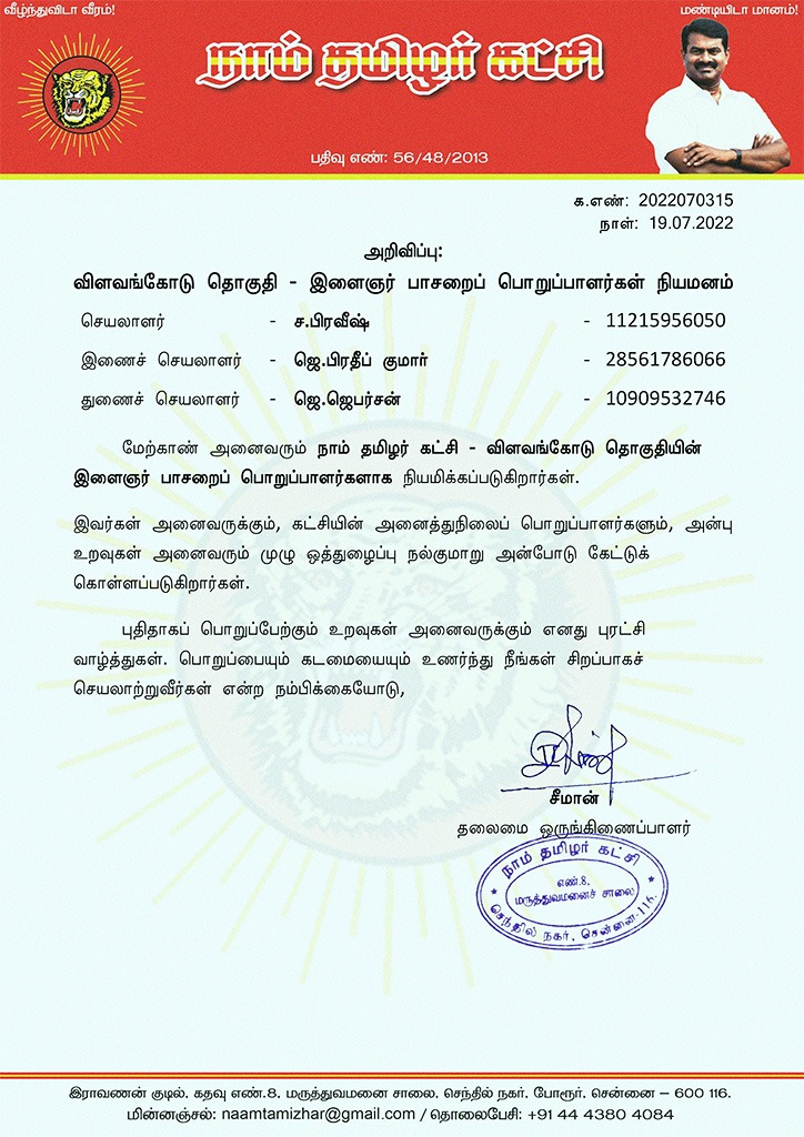 மேற்காண் அனைவரும் நாம் தமிழர் கட்சி – விளவங்கோடு தொகுதியின்