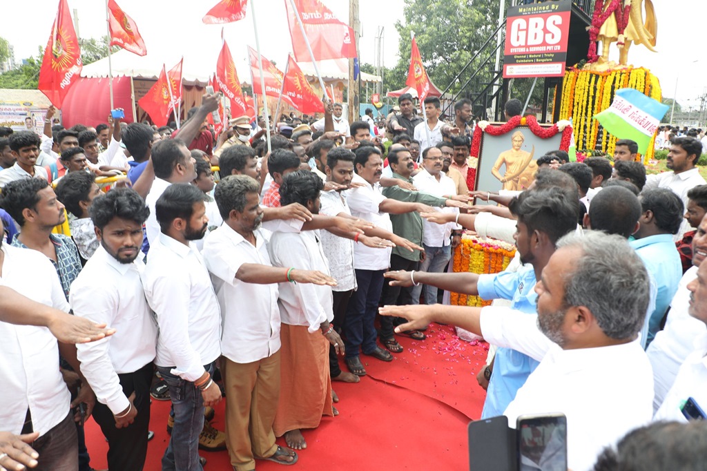 வீரமிகு நமது பாட்டனார் அழகுமுத்துக்கோன் அவர்களினுடைய 312ஆம் ஆண்டு பிறந்தநாளையொட்டி 11-07-2022 இன்று காலை 10 மணியளவில் சென்னை எழும்பூர், காந்தி – இர்வின் சாலையில் அமைந்துள்ள வீரப்பெரும்பாட்டன் அழகுமுத்துக்கோன் திருவுருவச்சிலைக்கு, நாம் தமிழர் கட்சி சார்பாக தலைமை ஒருங்கிணைப்பாளர் செந்தமிழன் சீமான் அவர்கள் மாலை அணிவித்து மலர்வணக்கம் செலுத்தினார்.