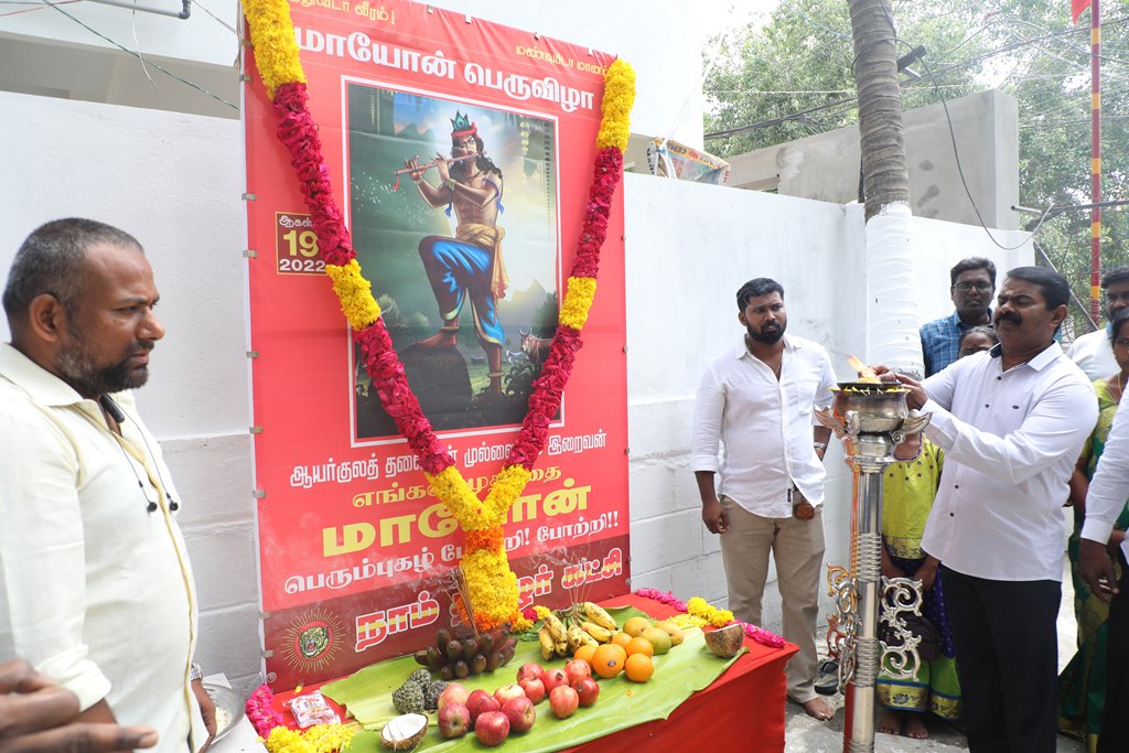 ஆயர்குலத் தலைவன், முல்லை நில இறைவன் நமது மூதாதை மாயோன் பெரும்புகழைப் போற்றி கொண்டாடுகின்ற மாயோன் திருநாளையொட்டி, இன்று 19-08-2022 காலை 11 மணியளவில் நாம் தமிழர் கட்சியின் வீரத்தமிழர் முன்னணி சார்பாக கட்சித் தலைமை அலுவலகத்தில் தலைமை ஒருங்கிணைப்பாளர் செந்தமிழன் சீமான் அவர்களின் தலைமையில் மாயோன் பெருவிழா கொண்டாடப்பட்டது.