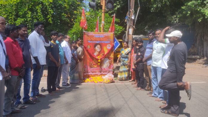 (28-08-2022) மூவர் உயிர்காக்க தன்னுயிர் ஈந்த தங்கை  செங்கொடி அவர்களுக்கு புதுச்சேரி நாம்தமிழர்கட்சி தட்டாஞ்சாவடி தொகுதி சார்பாக பாக்கமுடையான்பட்டு சந்திபில் வீரவணக்கம் செலுத்தும் நிகழ்வு நடைபெற்றது…