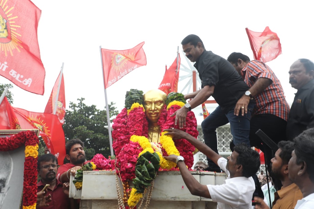 பெருந்தலைவர் காமராசர் அவர்களின் 47ஆம் ஆண்டு நினைவுநாளை முன்னிட்டு, 02-10-2022 அன்று சென்னை கிண்டியில் உள்ள காந்தி மண்டபத்தில் அமைந்துள்ள, அவரின் திருவுருவச்சிலைக்கு, நாம் தமிழர் கட்சியின் தலைமை ஒருங்கிணைப்பாளர் சீமான் அவர்கள் மாலை அணிவித்து மலர் வணக்கம் செலுத்தினார்.