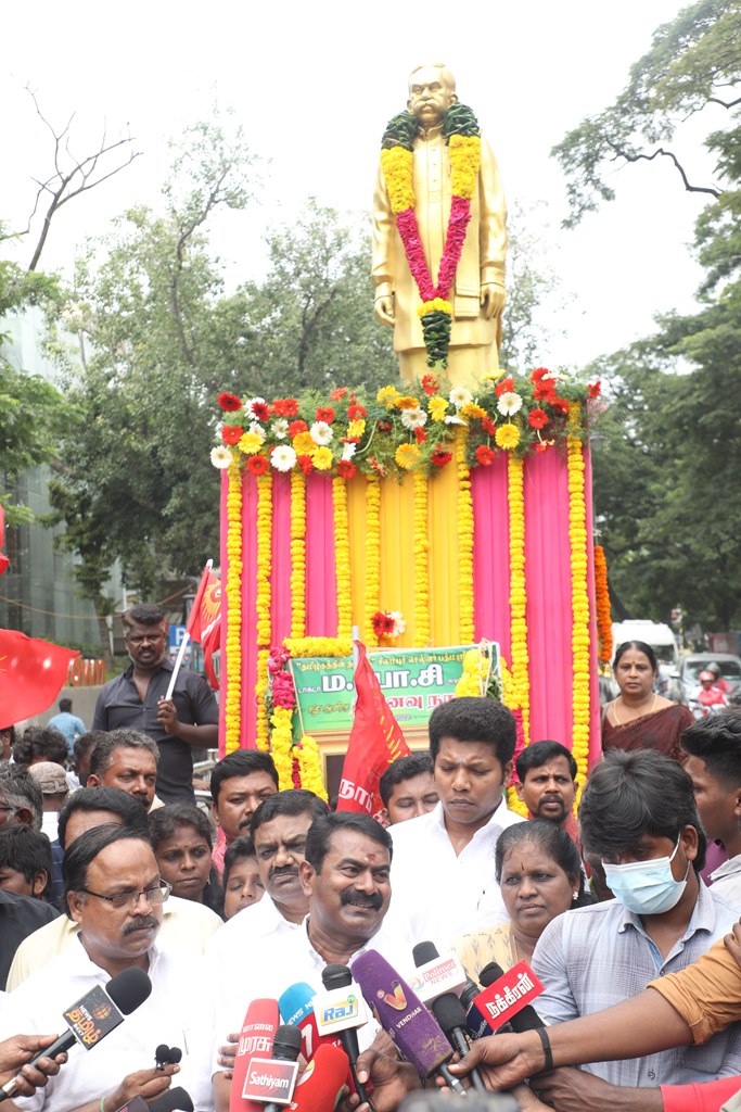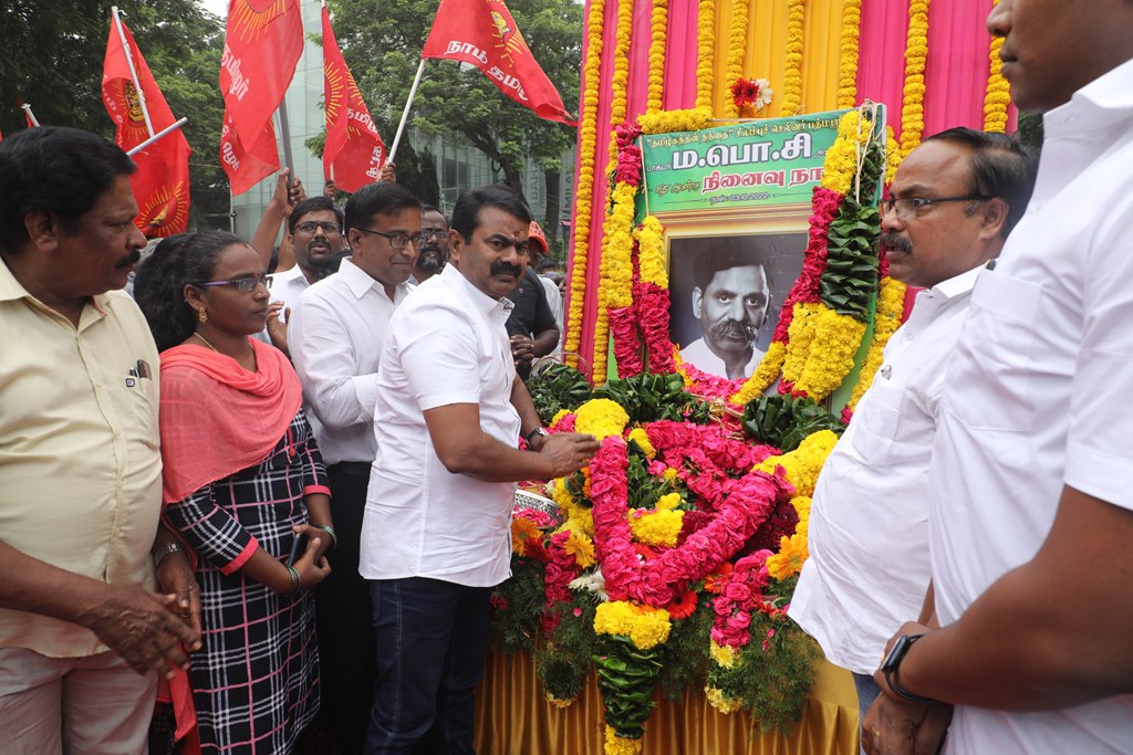 ‘சிலம்புச்செல்வர்’ பெருந்தமிழர் ம.பொ.சிவஞானம் அவர்களின் 27ஆம் ஆண்டு நினைவுநாளையொட்டி, 03-10-2022 அன்று சென்னை, பாண்டி பஜார், தியாகராயச் சாலையில் அமைந்துள்ள அவரது திருவுருவச்சிலைக்கு, நாம் தமிழர் கட்சி சார்பாக தலைமை ஒருங்கிணைப்பாளர் செந்தமிழன் சீமான் அவர்கள் மாலை அணிவித்து மலர் வணக்கம் செலுத்தினார்.