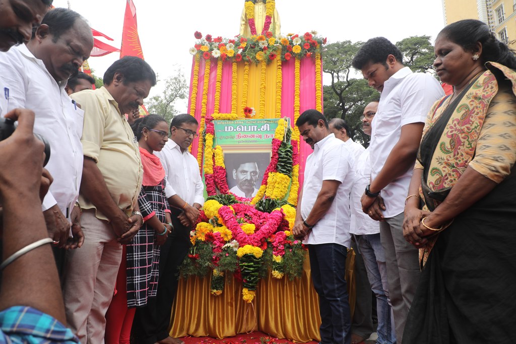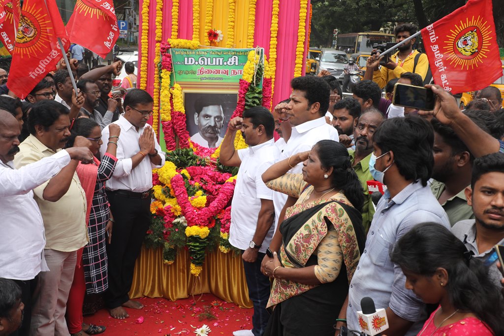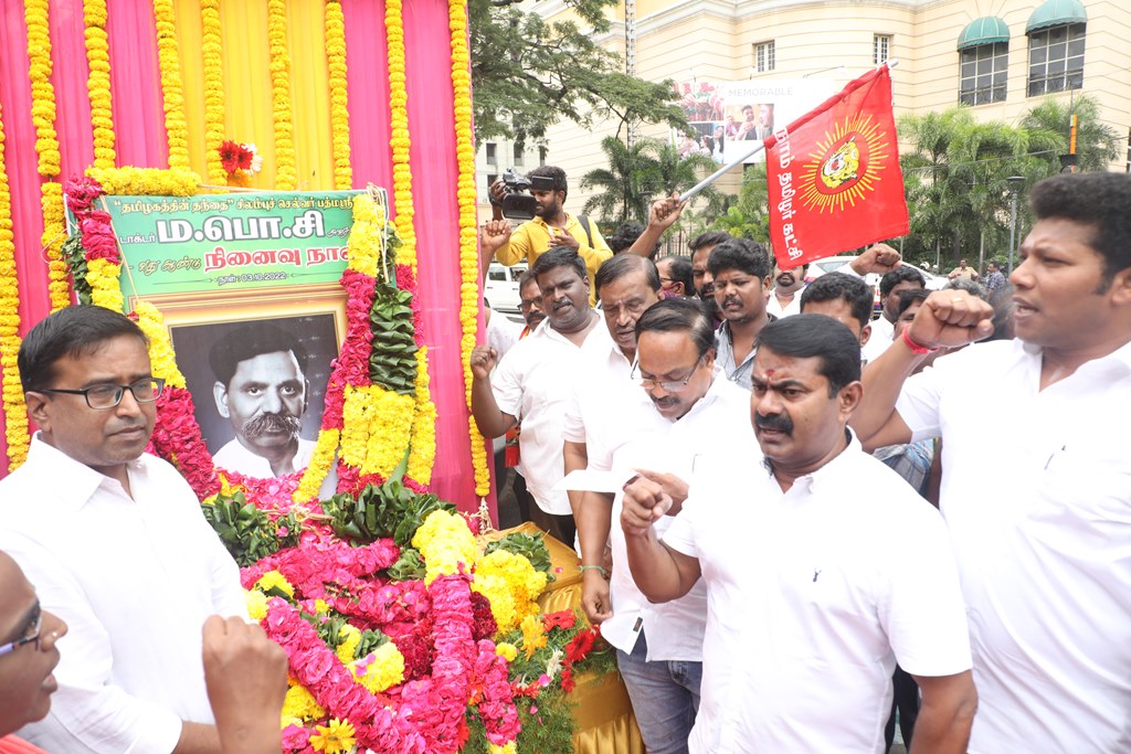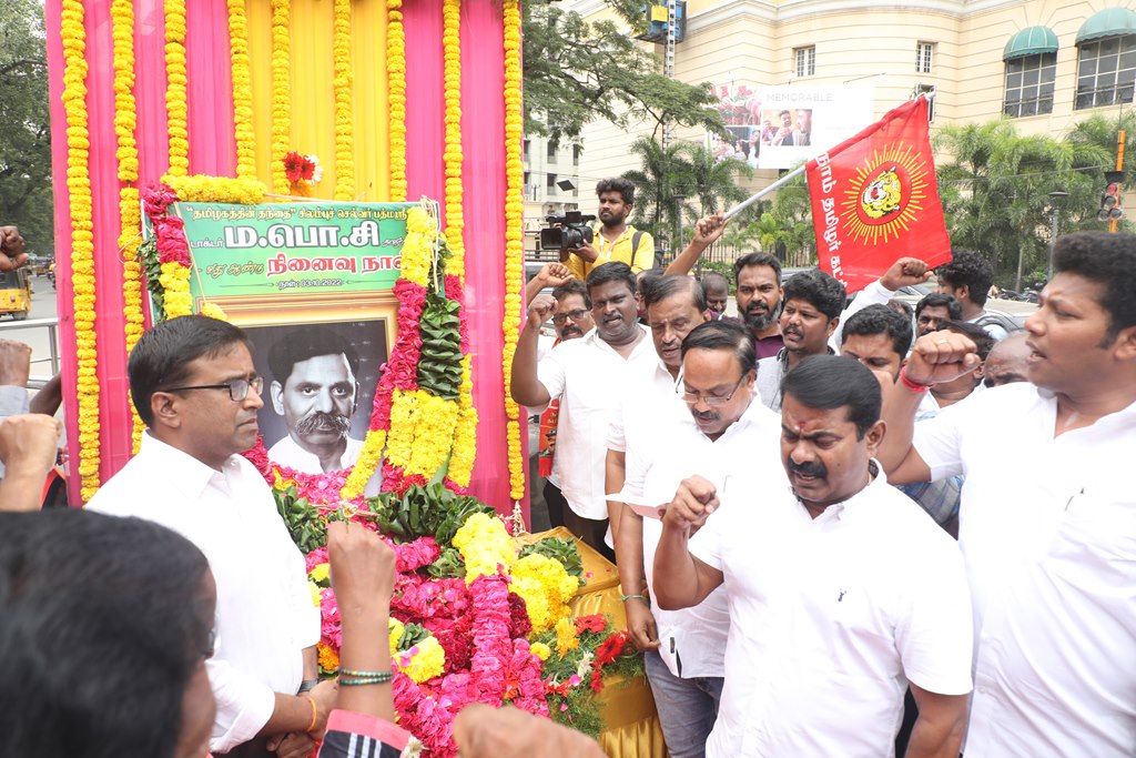 ‘சிலம்புச்செல்வர்’ பெருந்தமிழர் ம.பொ.சிவஞானம் அவர்களின் 27ஆம் ஆண்டு நினைவுநாளையொட்டி, 03-10-2022 அன்று சென்னை, பாண்டி பஜார், தியாகராயச் சாலையில் அமைந்துள்ள அவரது திருவுருவச்சிலைக்கு, நாம் தமிழர் கட்சி சார்பாக தலைமை ஒருங்கிணைப்பாளர் செந்தமிழன் சீமான் அவர்கள் மாலை அணிவித்து மலர் வணக்கம் செலுத்தினார்.