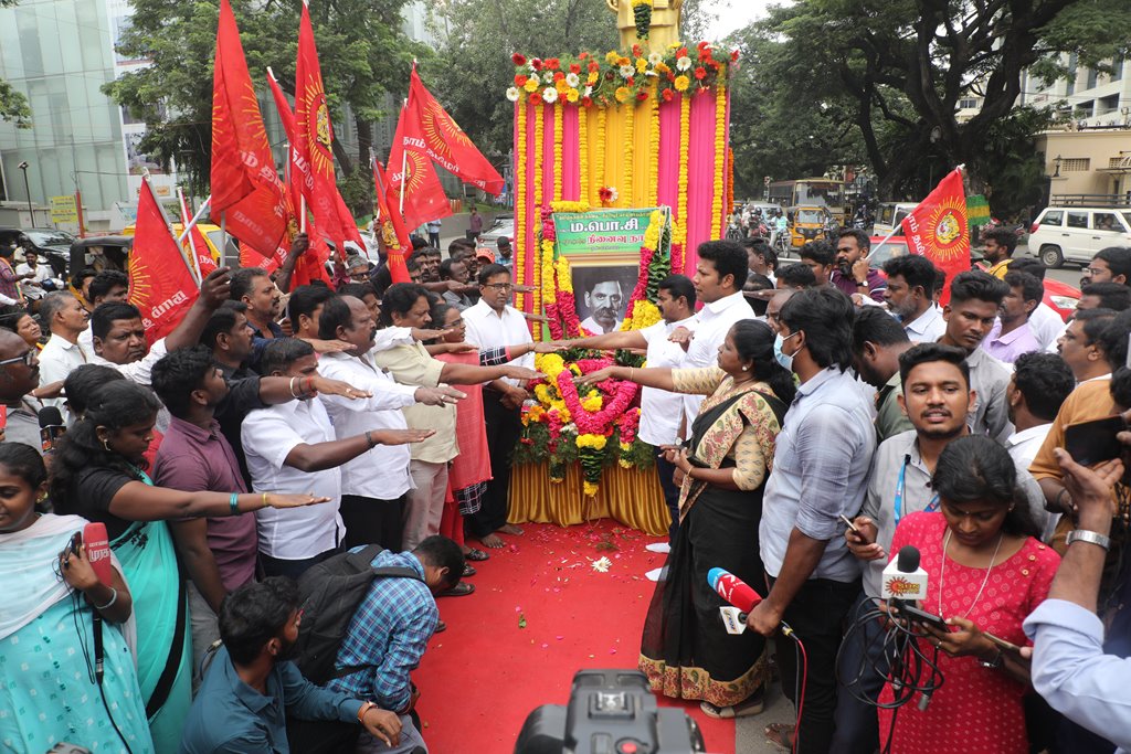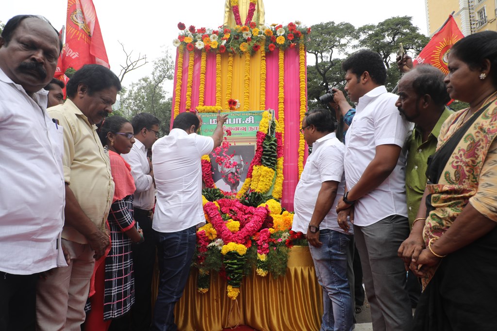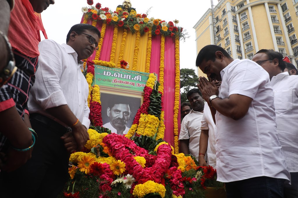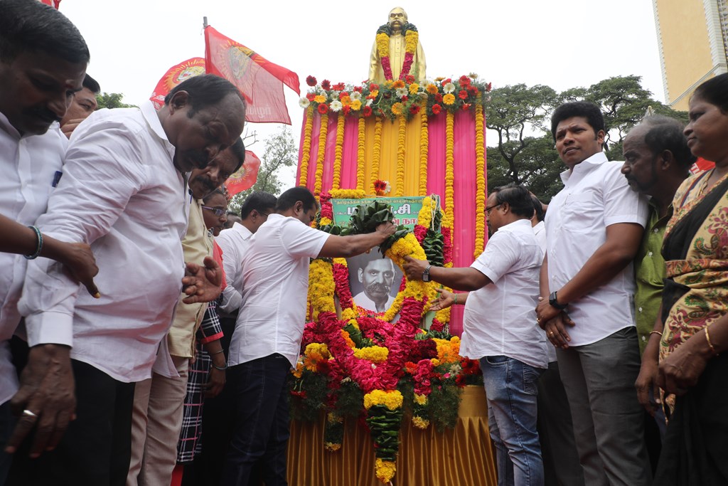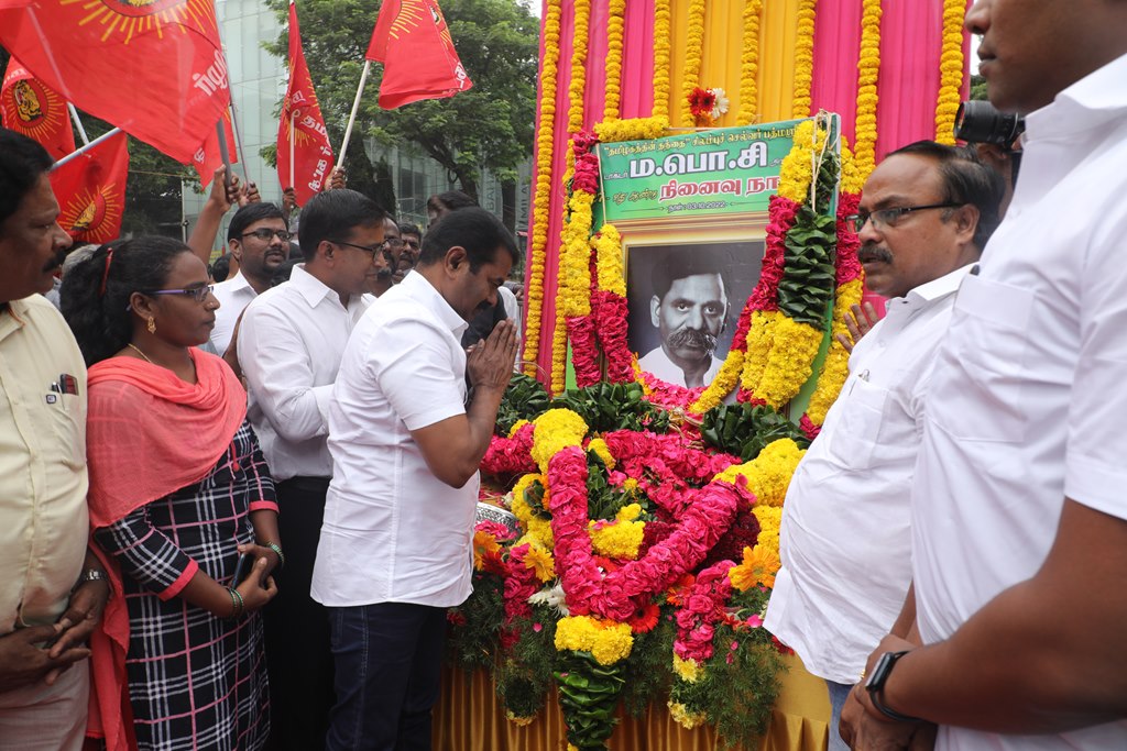 ‘சிலம்புச்செல்வர்’ பெருந்தமிழர் ம.பொ.சிவஞானம் அவர்களின் 27ஆம் ஆண்டு நினைவுநாளையொட்டி, 03-10-2022 அன்று சென்னை, பாண்டி பஜார், தியாகராயச் சாலையில் அமைந்துள்ள அவரது திருவுருவச்சிலைக்கு, நாம் தமிழர் கட்சி சார்பாக தலைமை ஒருங்கிணைப்பாளர் செந்தமிழன் சீமான் அவர்கள் மாலை அணிவித்து மலர் வணக்கம் செலுத்தினார்.