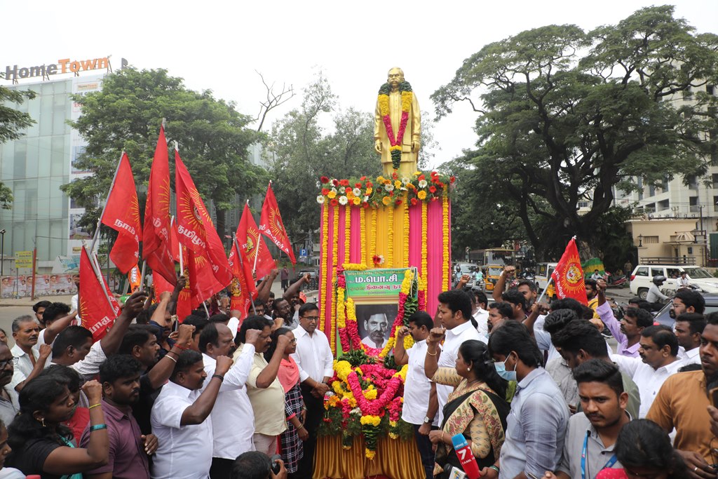 ‘சிலம்புச்செல்வர்’ பெருந்தமிழர் ம.பொ.சிவஞானம் அவர்களின் 27ஆம் ஆண்டு நினைவுநாளையொட்டி, 03-10-2022 அன்று சென்னை, பாண்டி பஜார், தியாகராயச் சாலையில் அமைந்துள்ள அவரது திருவுருவச்சிலைக்கு, நாம் தமிழர் கட்சி சார்பாக தலைமை ஒருங்கிணைப்பாளர் செந்தமிழன் சீமான் அவர்கள் மாலை அணிவித்து மலர் வணக்கம் செலுத்தினார்.