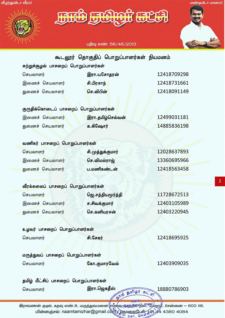 | இணைச் செயலாளர் | இரா.தமிழ்செல்வன் | 12499031181 |