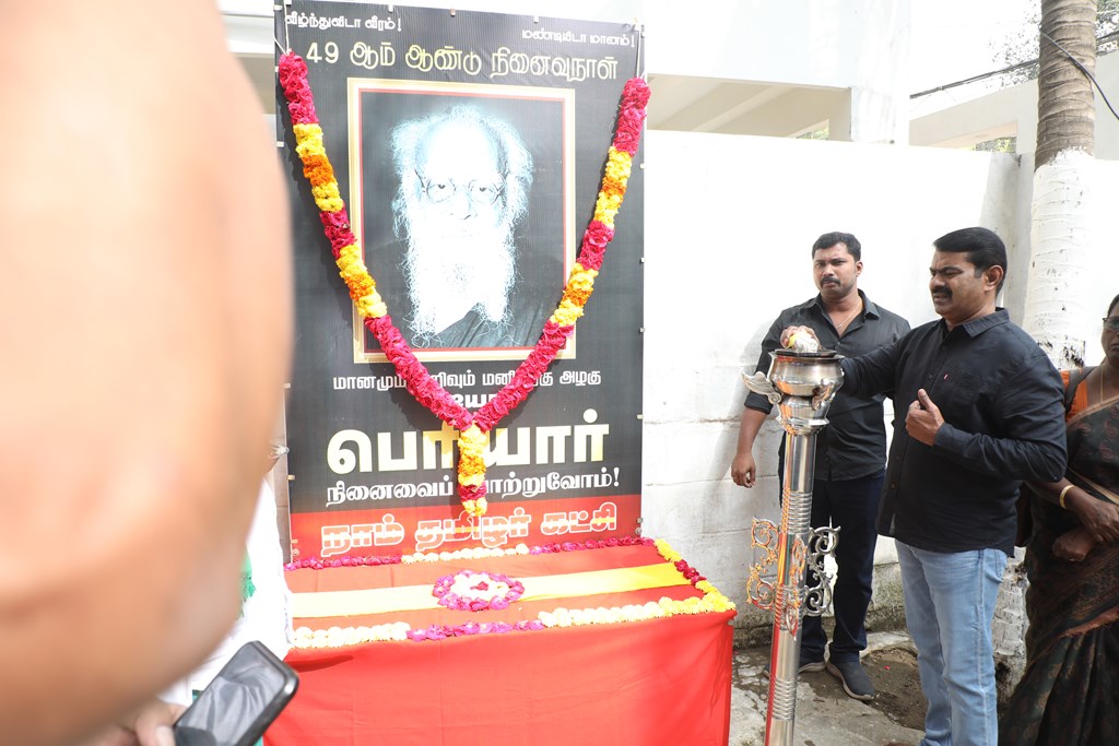 ஐயா பெரியார் அவர்களினுடைய 49ஆம் ஆண்டு நினைவு நாளையொட்டி 24-12-2022 அன்று, நாம் தமிழர் கட்சி சார்பாக கட்சித் தலைமை அலுவலகத்தில், தலைமை ஒருங்கிணைப்பாளர் செந்தமிழன் சீமான் அவர்களின் தலைமையில் மலர்வணக்க நிகழ்வு நடைபெற்றது.