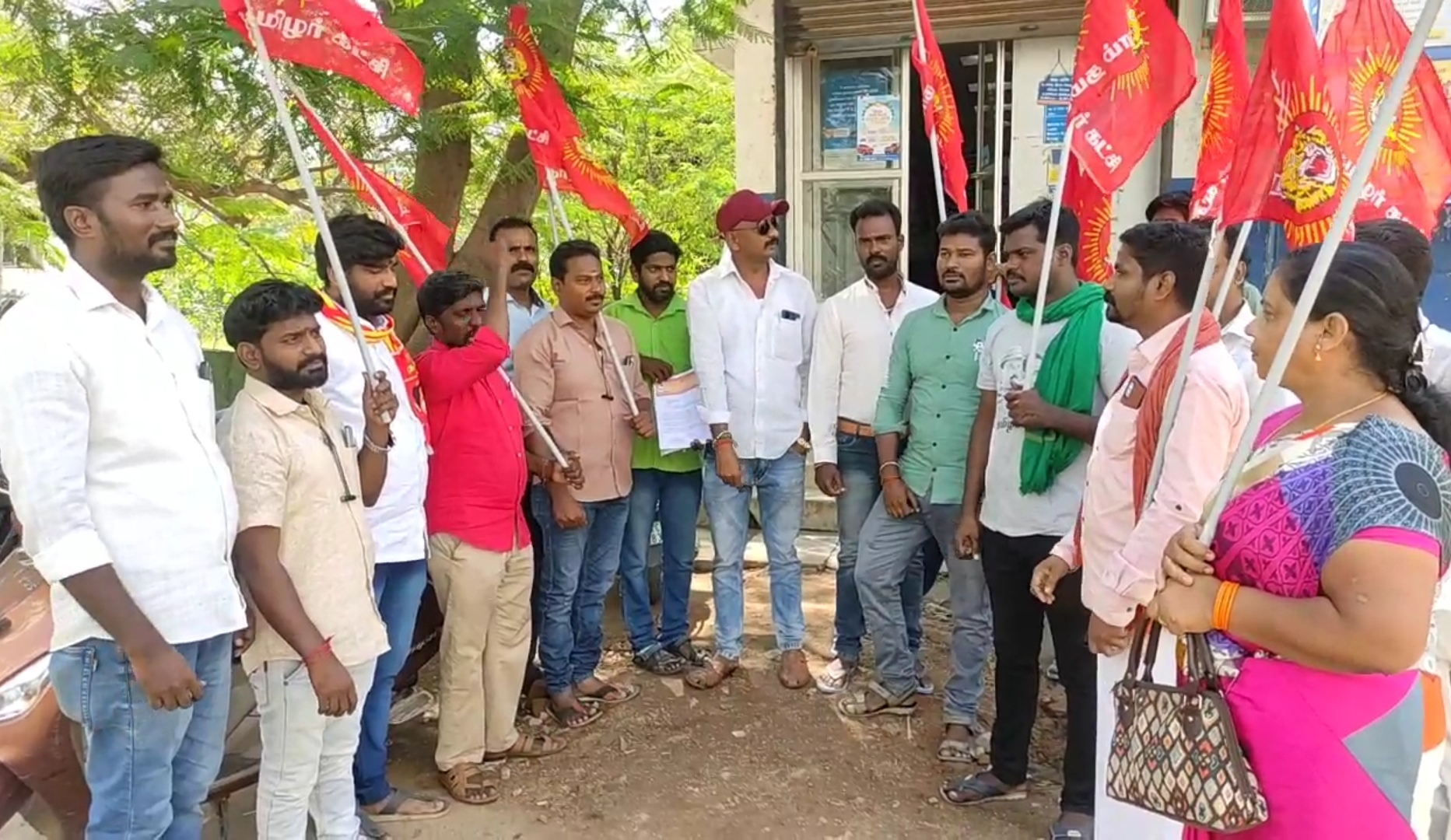 புதுச்சேரி மாநிலம் மணவெளி சட்டமன்ற தொகுதி தவளக்குப்பத்தில் இயங்கி பேங்க் ஆஃப் இண்டியா வங்கியில் தமிழ்மொழி புறக்கணிக்க ப்படுவதினை கண்டித்து முற்றுகைப்போராட்டம் கோரிக்கை மனு வழங்கும் நிகழ்வு நாம் தமிழர் கட்சியின் மணவெளி சட்டமன்ற தொகுதி நிர்வாகிகள் கோகுல் பாண்டுரங்கன் பலி நாம் தமிழர் கட்சியின் நிர்வாகிகள் இளங்கோவன் இரமேசு திருமுருகன் தேவிகாதிருக்குமரன் சந்துரு சுந்தர் கோரி மேடு செந்தில் அனைவரும் பங்கேற்று பேங்க் ஆஃப் இண்டியா கிளை மேலாளர் அவர்களிடம் கோரிக்கை மனு வழங்கினார்கள்..