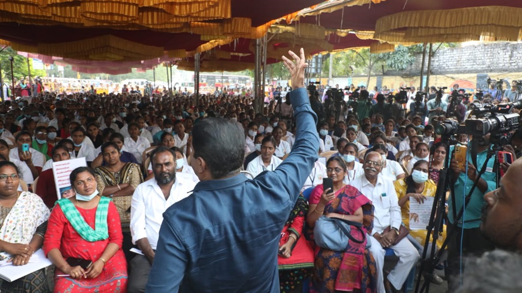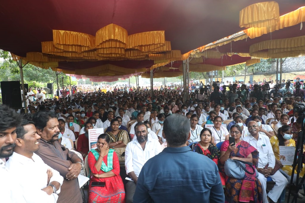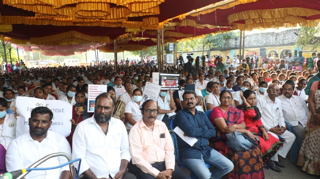 நாம் தமிழர் கட்சியின் தலைமை ஒருங்கிணைப்பாளர் செந்தமிழன் சீமான் அவர்கள் 05-01-2023 அன்று மாலை 04 மணியளவில் செவிலியர்களின் போராட்டத்தில் பங்கேற்று, முழு ஆதரவு தெரிவித்து, கோரிக்கைகளை வலியுறுத்தி உரையாற்றினார்.