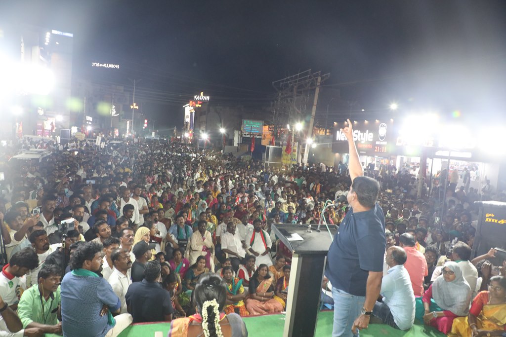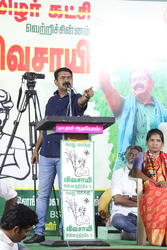 எதிர்வரும் பிப்ரவரி 27 அன்று நடைபெறவிருக்கும், ஈரோடு கிழக்கு சட்டமன்றத் தொகுதிக்கான இடைத்தேர்தலில், மக்களின் துணையோடு மாற்று அரசியல் புரட்சியை ஏற்படுத்த தனித்து களம் காணும் நாம் தமிழர் கட்சி சார்பாக போட்டியிடுகின்ற வேட்பாளர் மேனகா நவநீதன் அவர்களை ஆதரித்து, தலைமை ஒருங்கிணைப்பாளர் செந்தமிழன் சீமான் அவர்களின் தலைமையில் 24-02-2023 அன்று மாலை 04 மணியளவில் ஈரோடு கிருஷ்ணா திரையரங்கம் அருகில் மாபெரும் பரப்புரைப் பொதுக்கூட்டம் நடைபெற்றது.