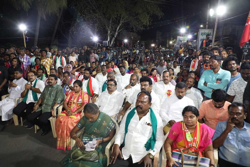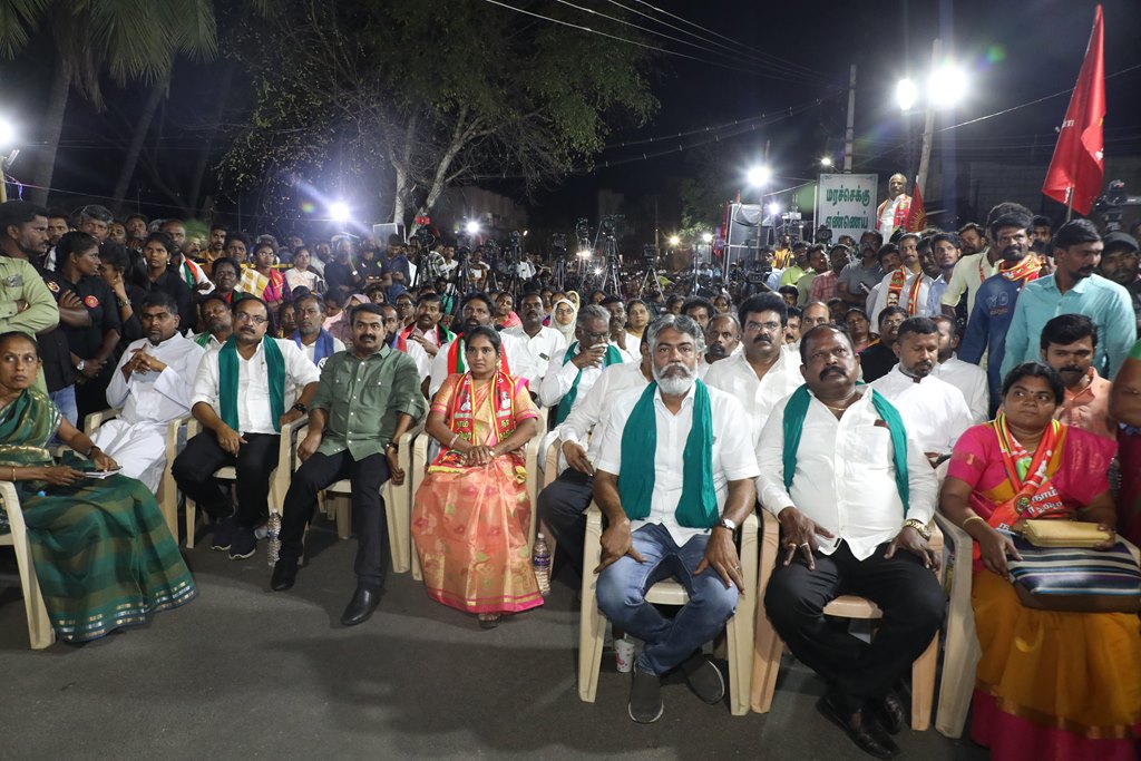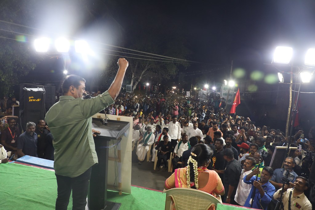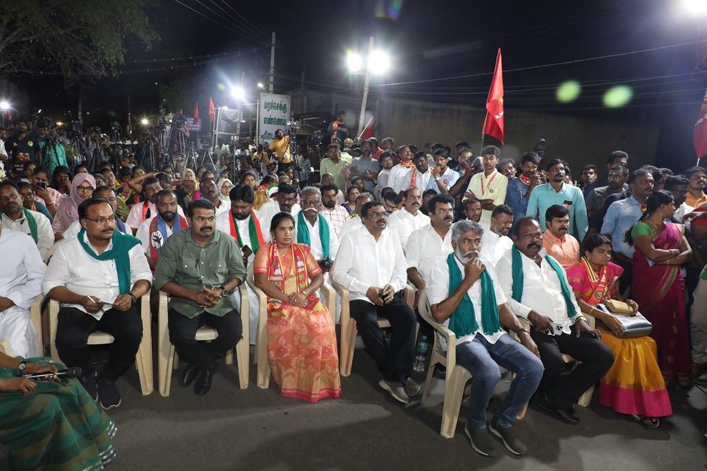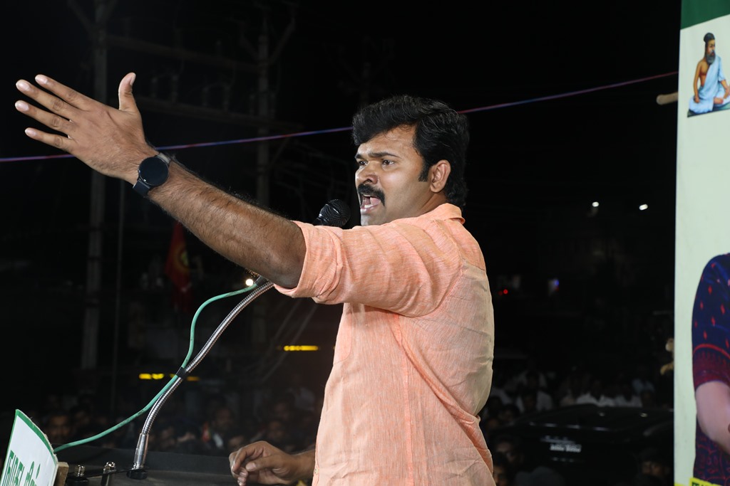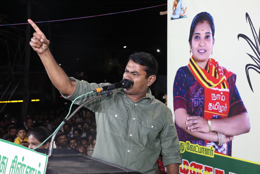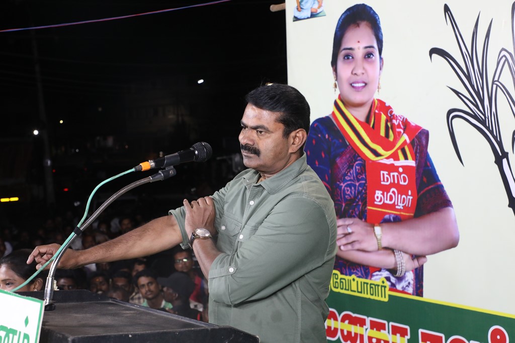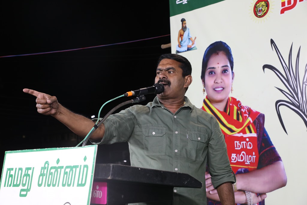 எதிர்வரும் பிப்ரவரி 27 அன்று நடைபெறவிருக்கும், ஈரோடு கிழக்கு சட்டமன்றத் தொகுதிக்கான இடைத்தேர்தலில், மக்களின் துணையோடு மாற்று அரசியல் புரட்சியை ஏற்படுத்த தனித்து களம் காணும் நாம் தமிழர் கட்சி சார்பாக போட்டியிடுகின்ற வேட்பாளர் மேனகா நவநீதன் அவர்களை ஆதரித்து, தலைமை ஒருங்கிணைப்பாளர் செந்தமிழன் சீமான் அவர்களின் தலைமையில் 23-02-2023 அன்று மாலை 04 மணியளவில் ஈரோடு கொல்லம்பாளையம் பகுதியில் மாபெரும் பரப்புரைப் பொதுக்கூட்டம் நடைபெற்றது.