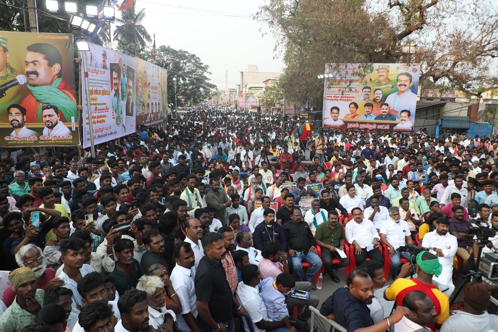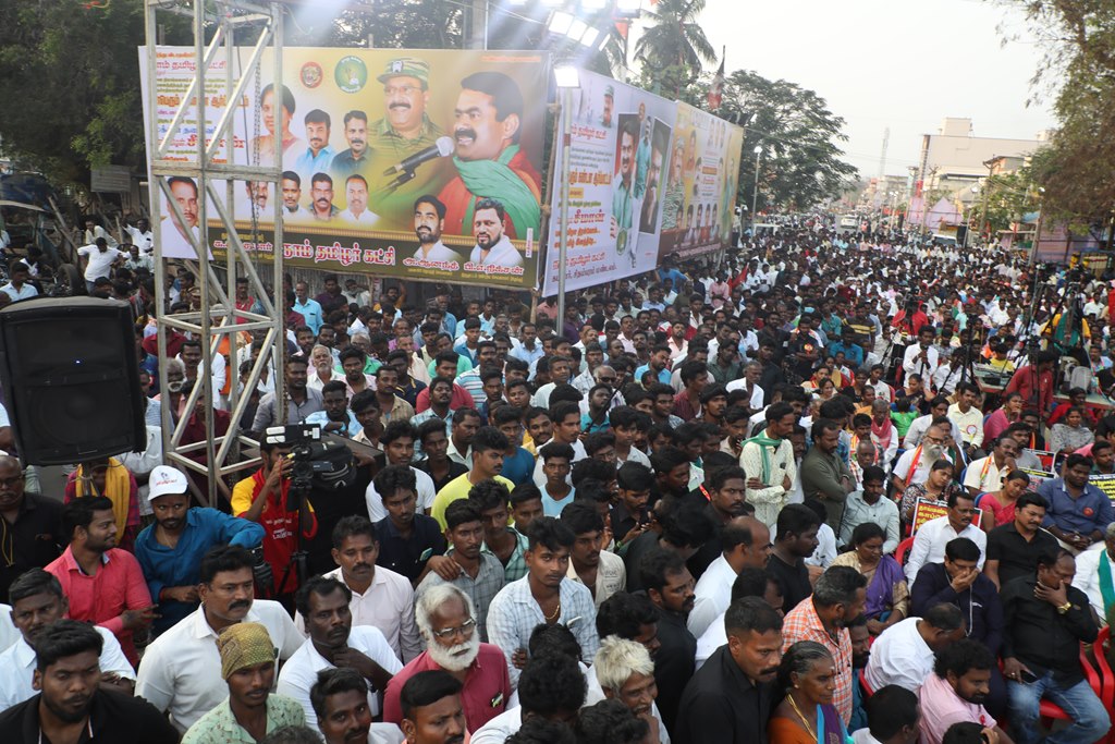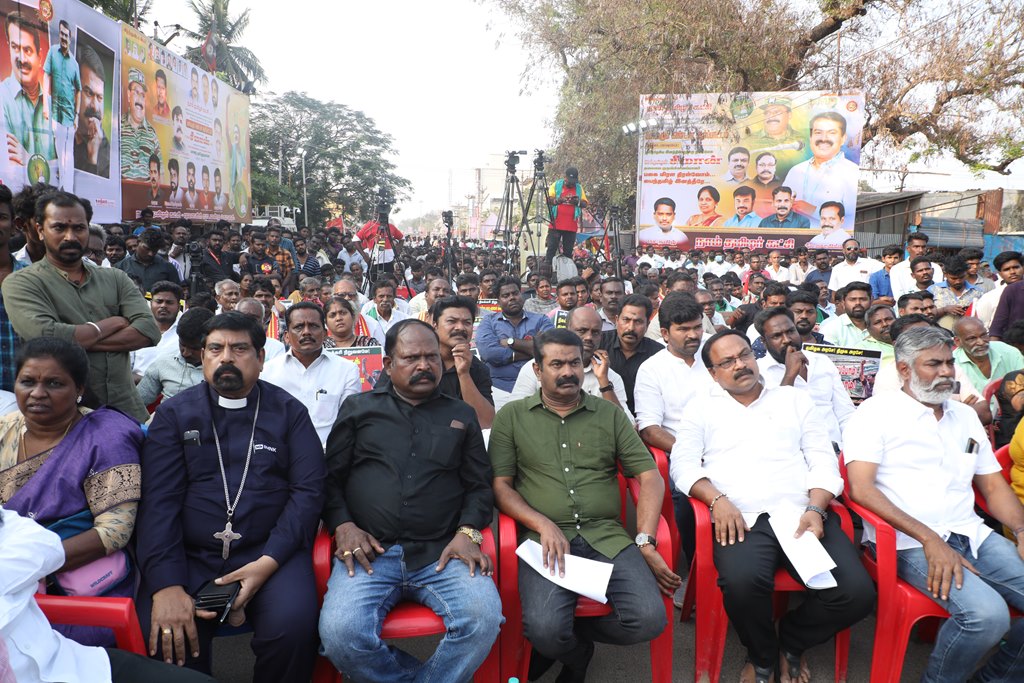 சுரங்க விரிவாக்கப் பணிகளுக்காக நெய்வேலியைச் சுற்றியுள்ள கிராமங்களிலிருந்து ஏழை, எளிய மக்களின் நிலங்களை வலுக்கட்டாயமாக அபகரிக்கும் நெய்வேலி நிலக்கரி நிறுவனத்திற்குத் துணை நின்று, காவல்துறையினரின் மூலம் அடக்குமுறைகளை ஏவி, அப்பாவி வேளாண் பெருங்குடி மக்களைக் கைது செய்யும் திமுக அரசின் எதேச்சதிகாரபோக்கைக் கண்டித்தும், நிலம் வழங்கிய குடும்பங்களுக்கு ஒப்பந்தப்படி பணி வழங்காமலும், ஒப்பந்தத் தொழிலாளர்களின் பணியை நிரந்தரம் செய்யாமலும், தமிழ் இளைஞர்களுக்குப் பணி வழங்காமலும் தொடர்ந்து இனப்பாகுபாடு கடைப்பிடிக்கும் நெய்வேலி நிலக்கரி நிறுவனத்தைக் கண்டித்தும், நாம் தமிழர் கட்சி சார்பாக தலைமை ஒருங்கிணைப்பாளர் செந்தமிழன் சீமான் அவர்களின் தலைமையில் 14-03-2023 அன்று கடலூர் மாவட்டம் சேத்தியாத்தோப்பில் மாபெரும் கண்டன ஆர்ப்பாட்டம் நடைபெற்றது.