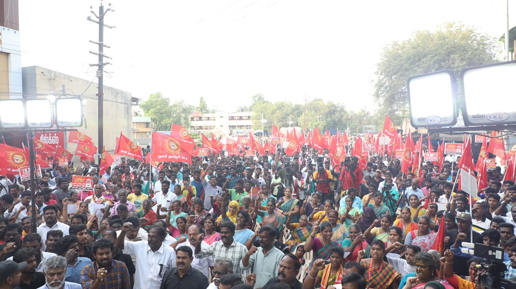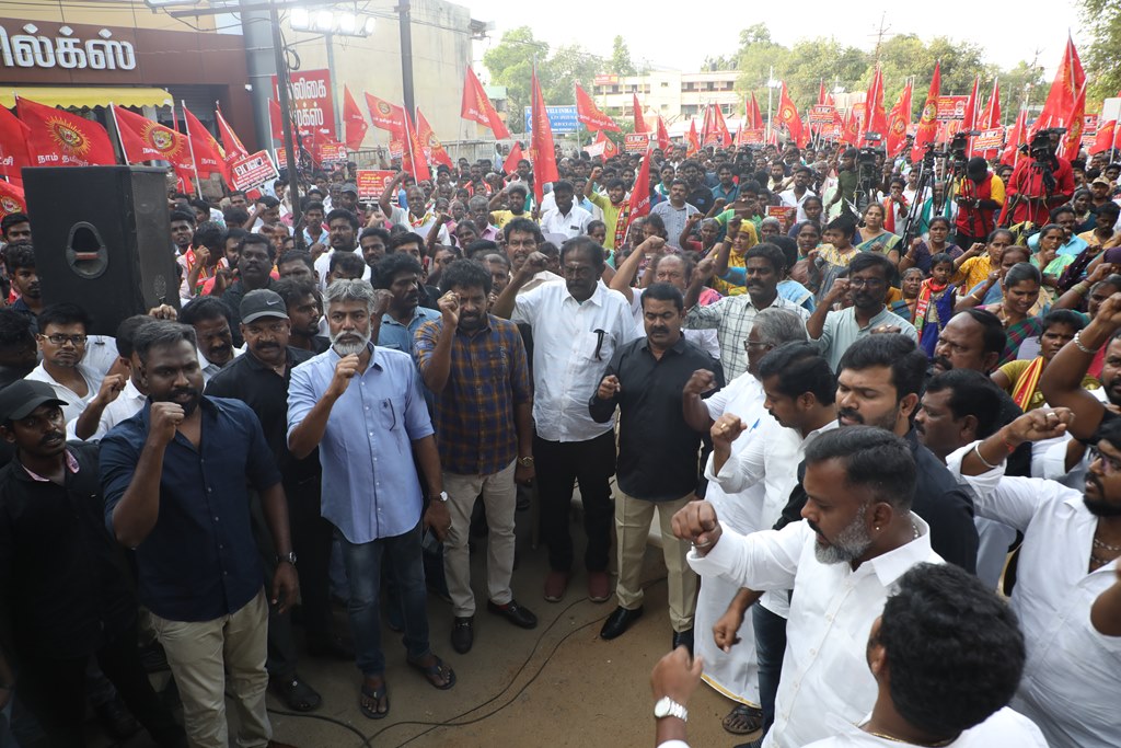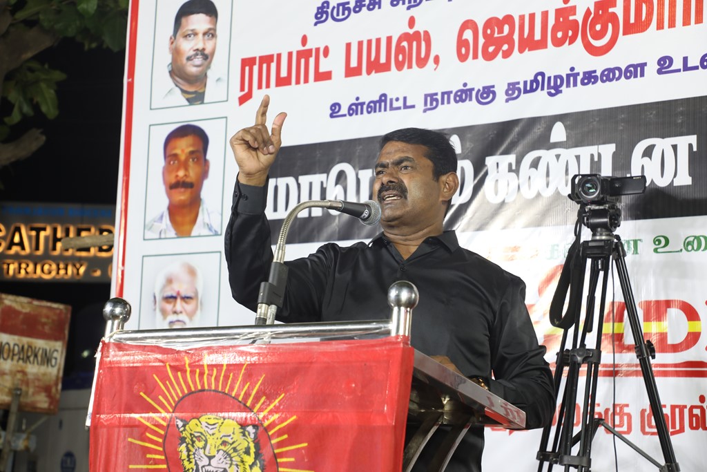நான்கு தமிழர்களை உடனடியாக விடுவிக்கக்கோரி செந்தமிழன் சீமான் தலைமையில் மாபெரும் கண்டன ஆர்ப்பாட்டம் – திருச்சி