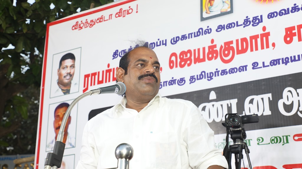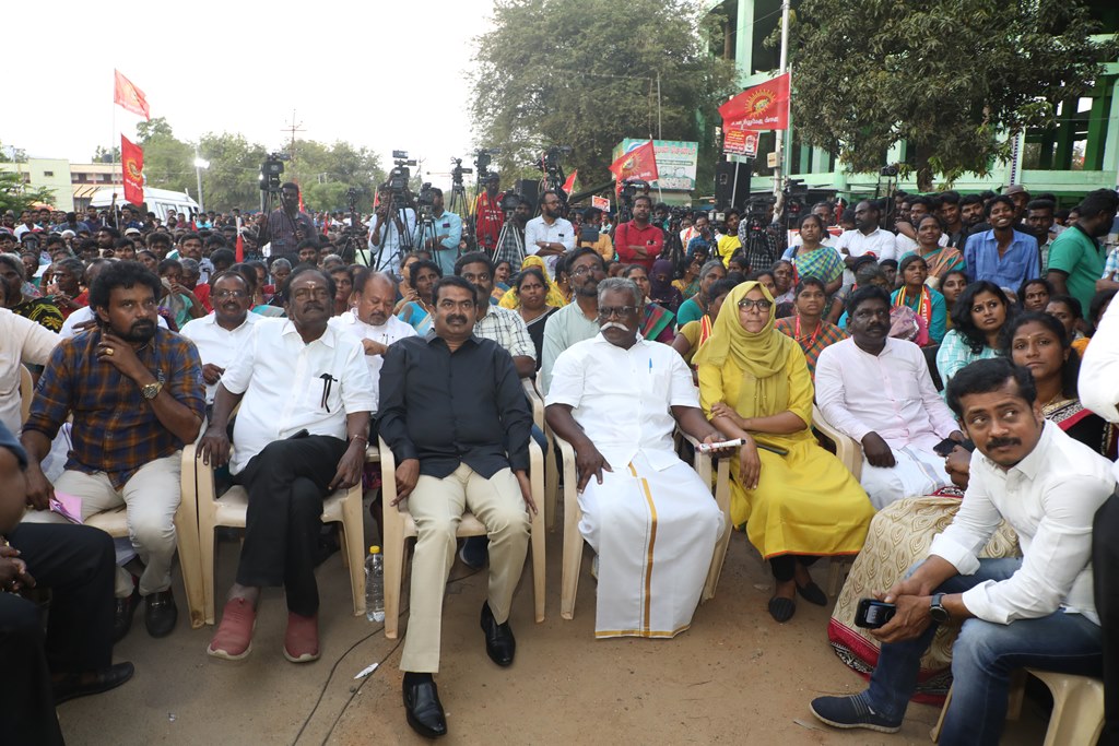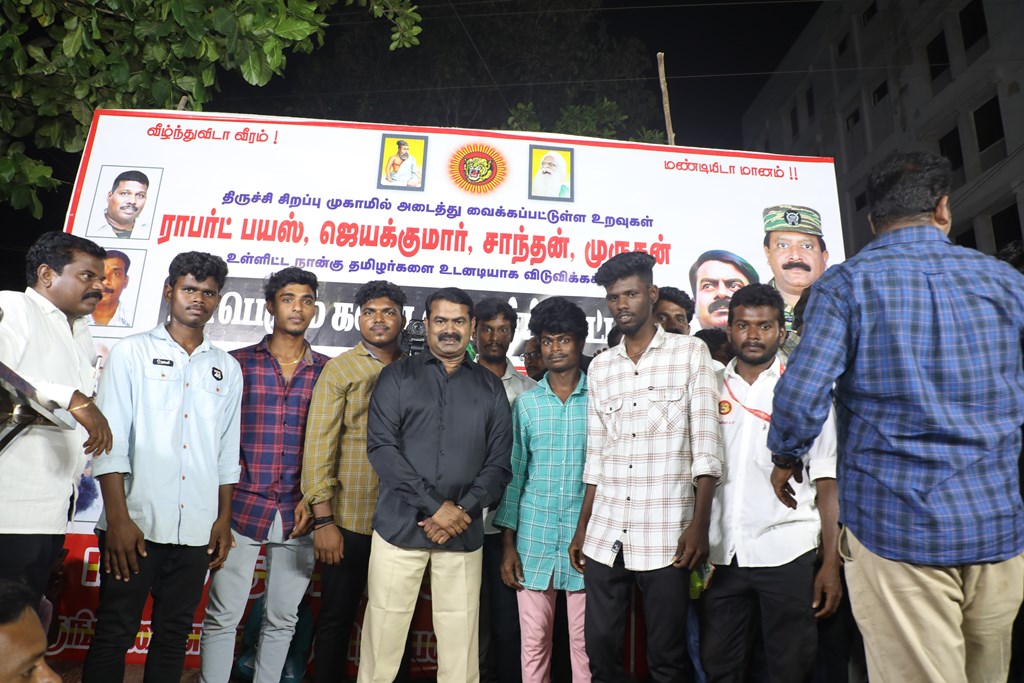 31 ஆண்டுகளுக்கும் மேலான கொடுஞ்சிறைவாசத்திற்குப் பிறகு விடுதலை செய்யப்பட்டும், வெளியில் விடாமல் திருச்சி சிறப்பு முகாமில் அடைத்து வைக்கப்பட்டுள்ள உறவுகள் ராபர்ட் பயஸ், ஜெயக்குமார், சாந்தன், முருகன் உள்ளிட்ட நான்கு தமிழர்களை உடனடியாக விடுவித்து, அவர்கள் விரும்பிய வாழ்க்கையை வாழ வழிவகை செய்வதற்குரிய சட்டரீதியான நடவடிக்கைகளை தமிழ்நாடு அரசு விரைந்து முன்னெடுக்க வலியுறுத்தி நாம் தமிழர் கட்சியின் தலைமை ஒருங்கிணைப்பாளர் செந்தமிழன் சீமான் அவர்கள் தலைமையில் 23-03-2023 அன்று திருச்சி மத்திய பேருந்து நிலையம் அருகில் மாபெரும் கண்டன பொதுக்கூட்டம் நடைப்பெற்றது.