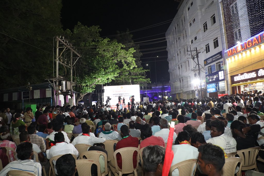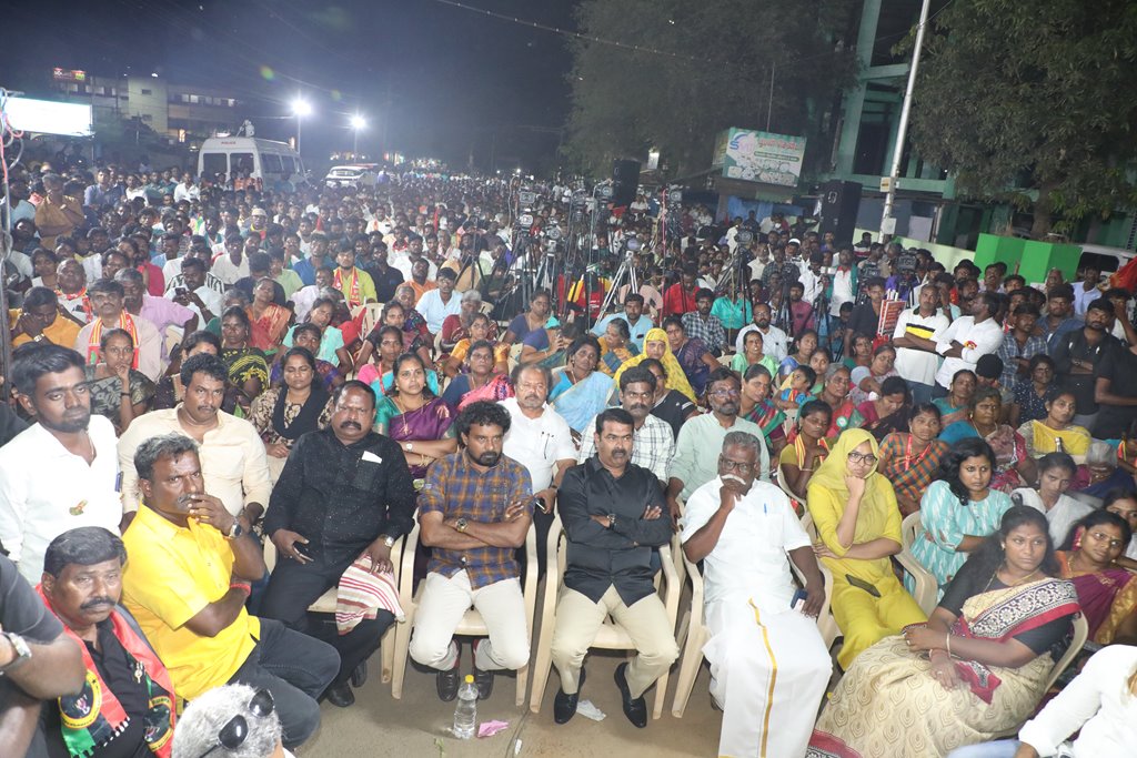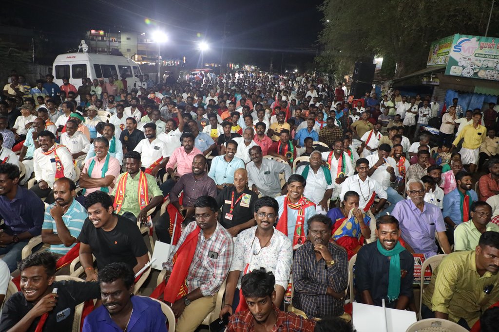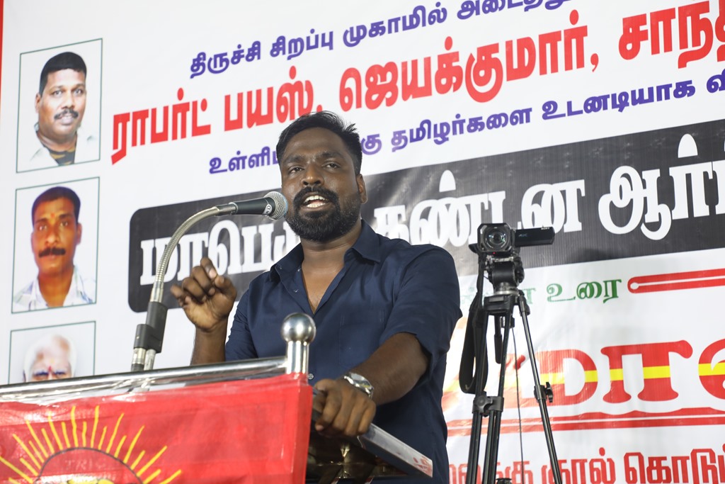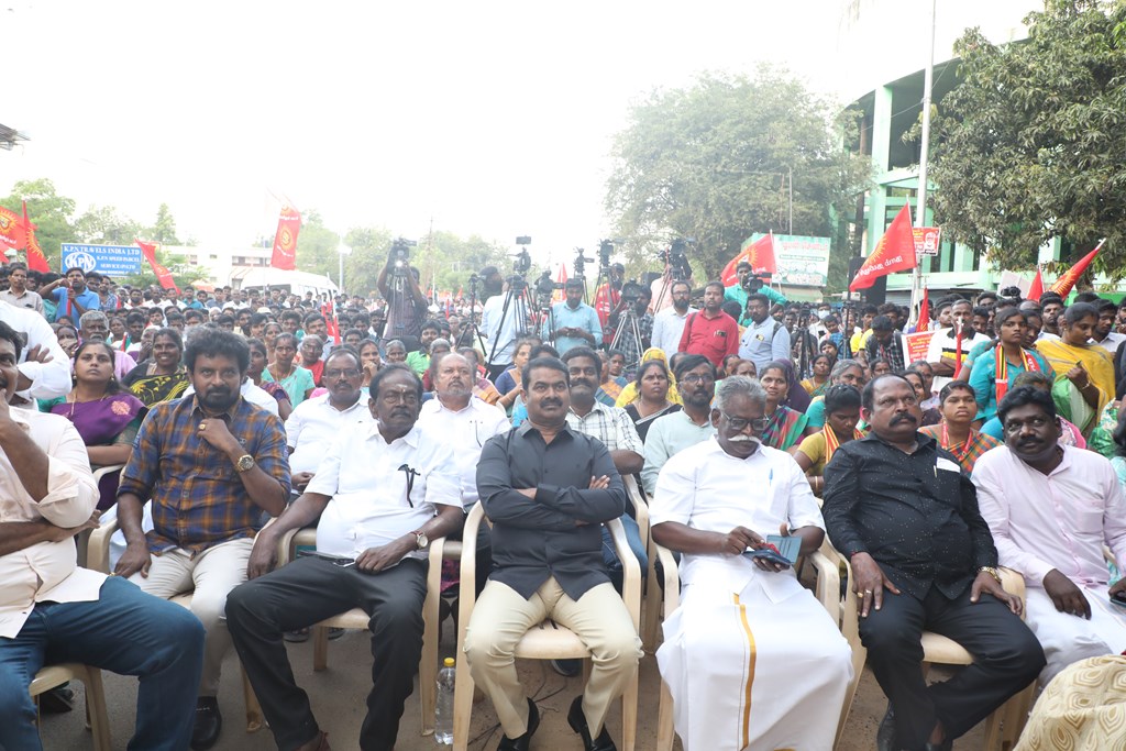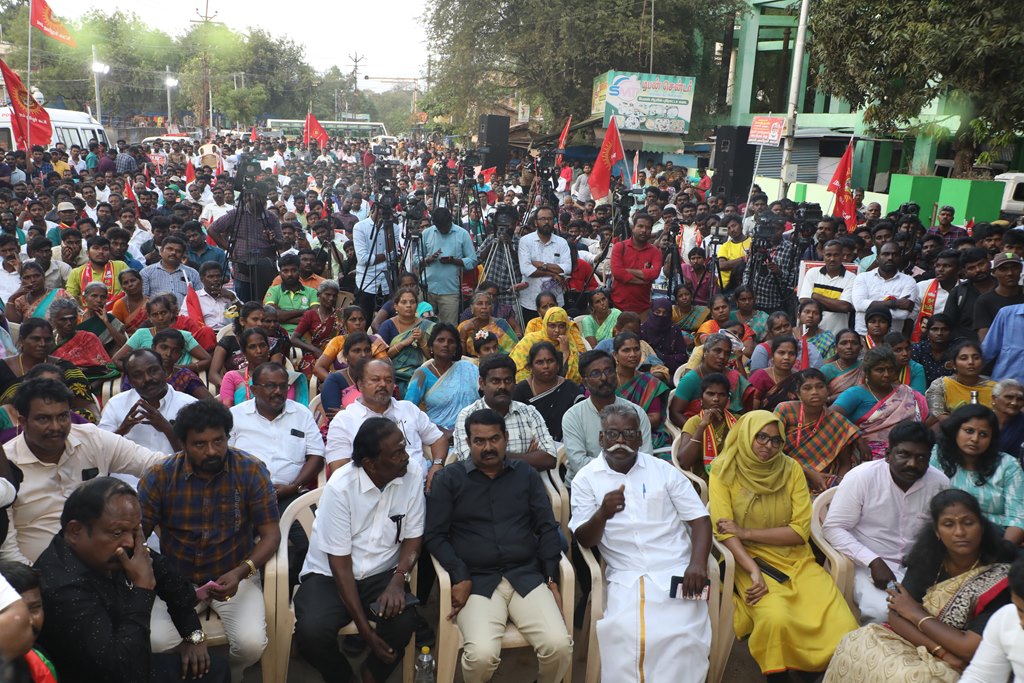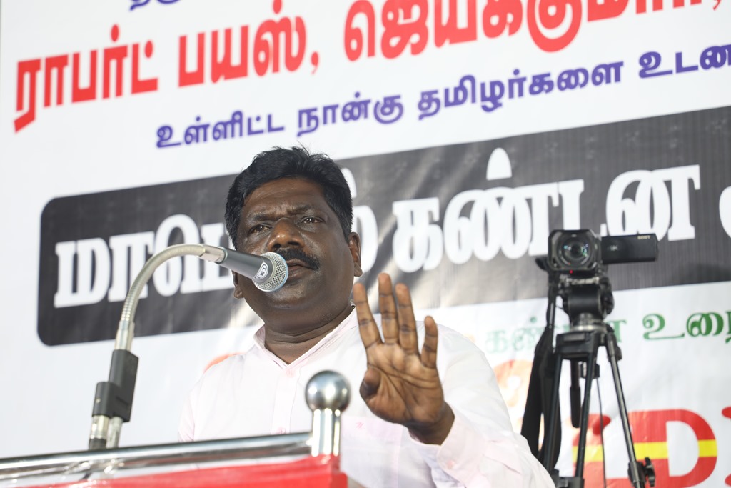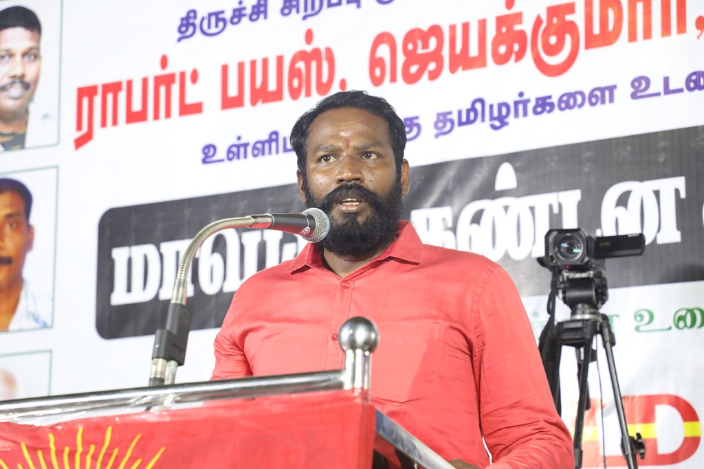 31 ஆண்டுகளுக்கும் மேலான கொடுஞ்சிறைவாசத்திற்குப் பிறகு விடுதலை செய்யப்பட்டும், வெளியில் விடாமல் திருச்சி சிறப்பு முகாமில் அடைத்து வைக்கப்பட்டுள்ள உறவுகள் ராபர்ட் பயஸ், ஜெயக்குமார், சாந்தன், முருகன் உள்ளிட்ட நான்கு தமிழர்களை உடனடியாக விடுவித்து, அவர்கள் விரும்பிய வாழ்க்கையை வாழ வழிவகை செய்வதற்குரிய சட்டரீதியான நடவடிக்கைகளை தமிழ்நாடு அரசு விரைந்து முன்னெடுக்க வலியுறுத்தி நாம் தமிழர் கட்சியின் தலைமை ஒருங்கிணைப்பாளர் செந்தமிழன் சீமான் அவர்கள் தலைமையில் 23-03-2023 அன்று திருச்சி மத்திய பேருந்து நிலையம் அருகில் மாபெரும் கண்டன பொதுக்கூட்டம் நடைப்பெற்றது.