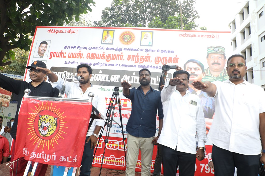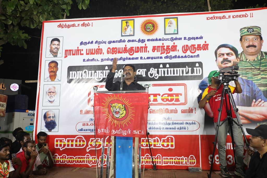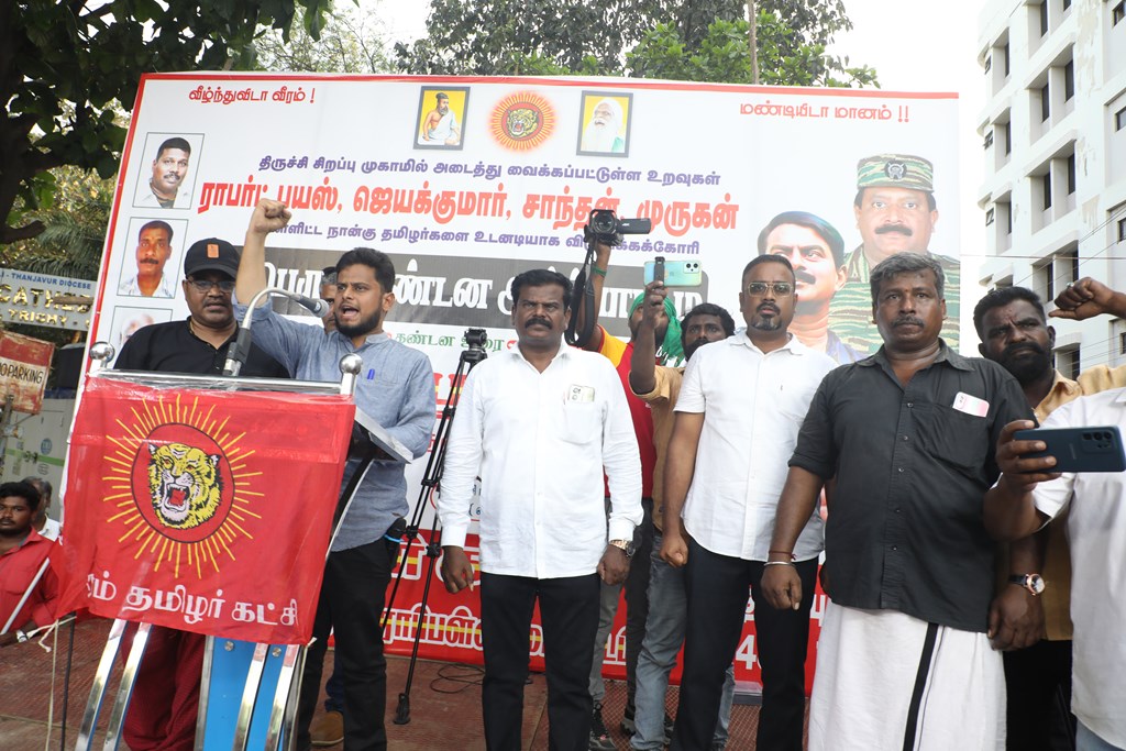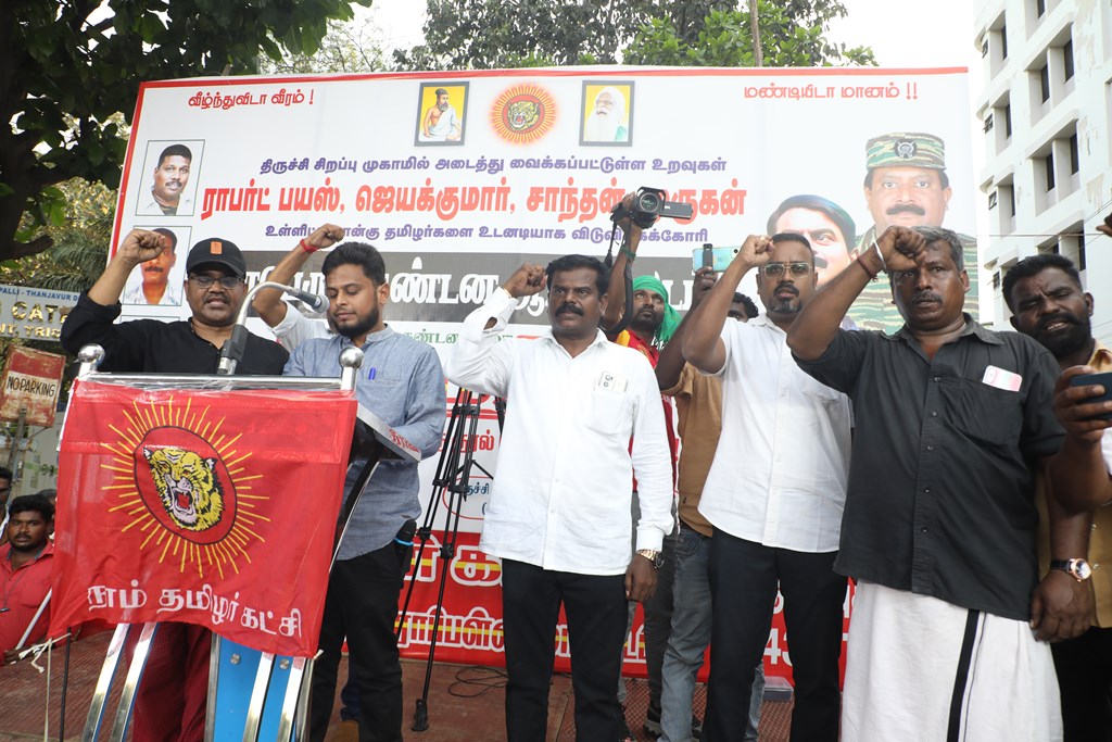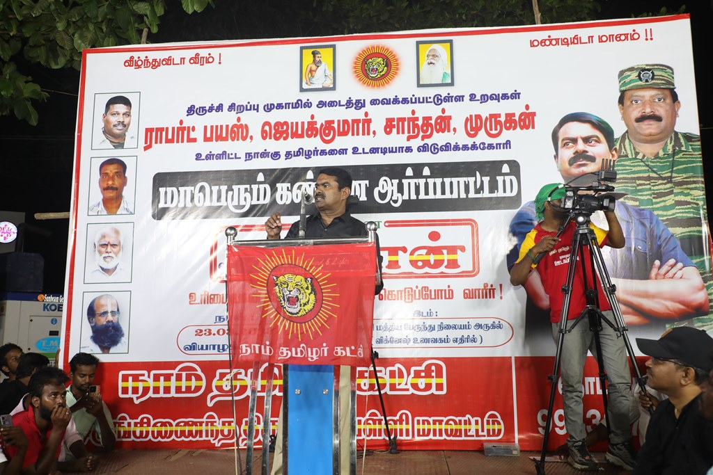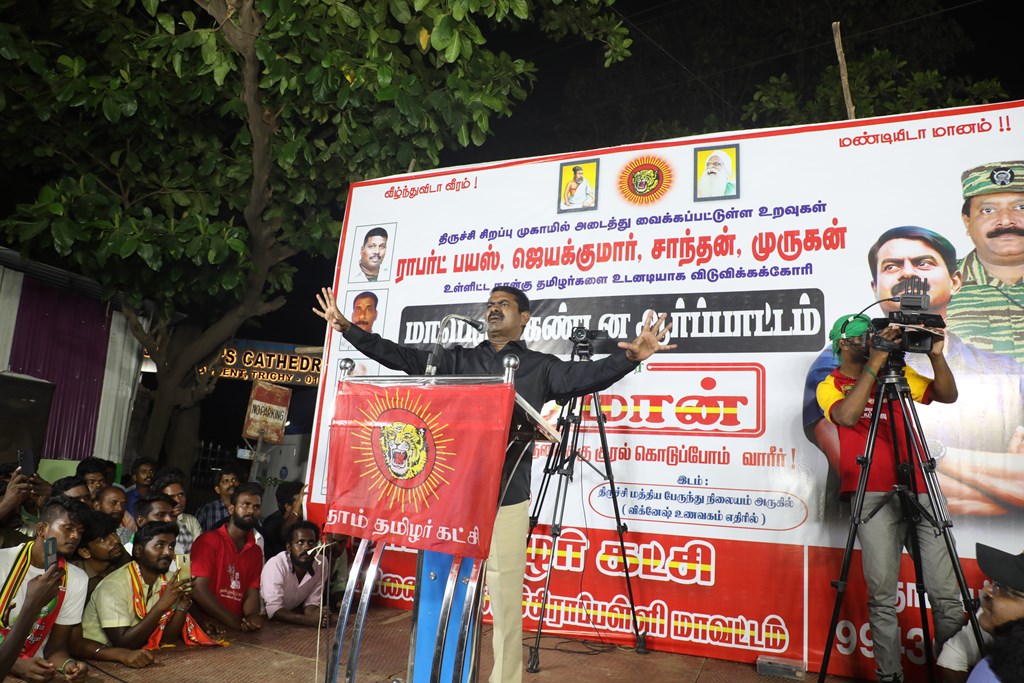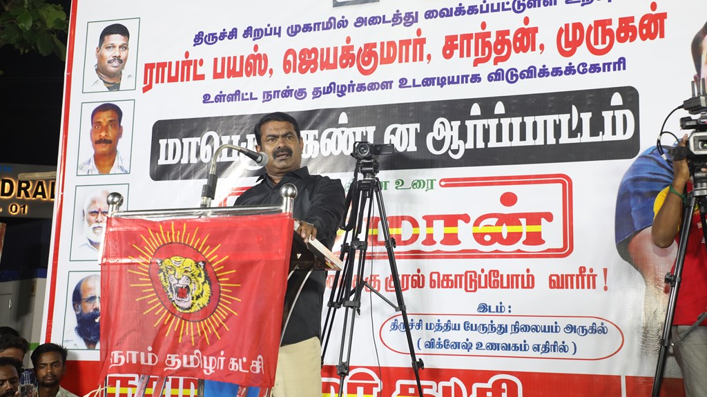நான்கு தமிழர்களை உடனடியாக விடுவிக்கக்கோரி செந்தமிழன் சீமான் தலைமையில் மாபெரும் கண்டன ஆர்ப்பாட்டம் – திருச்சி