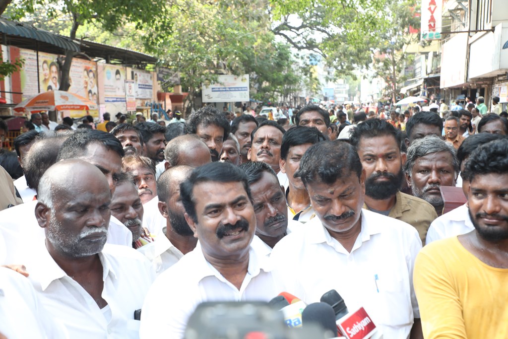 தமிழகம் முழுவதுமுள்ள 13500க்கும் மேற்பட்ட மக்கள் நலப் பணியாளர்களின் நீண்டகாலப் போராட்டக்கோரிக்கைகளான பணி நிரந்தரம் மற்றும் காலமுறை ஊதியம் வழங்கும் அறிவிப்பை, நடப்பு சட்டமன்றக் கூட்டத் தொடரிலேயே வெளியிடக்கோரி, சென்னை சைதாப்பேட்டை, பனகல் மாளிகை முன்பு, தமிழ்நாடு மக்கள் நலப்பணியாளர் சங்கம் முன்னெடுத்துவரும் மாபெரும் காத்திருக்கும் போராட்டத்திற்கு ஆதரவளிக்கும் விதமாக, 21-04-2023 அன்று நாம் தமிழர் கட்சியின் தலைமை ஒருங்கிணைப்பாளர் செந்தமிழன் சீமான் அவர்கள் நேரில் பங்கேற்று, போராட்டக் கோரிக்கைகளை வலியுறுத்தி உரையாற்றினார்.