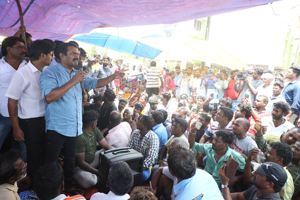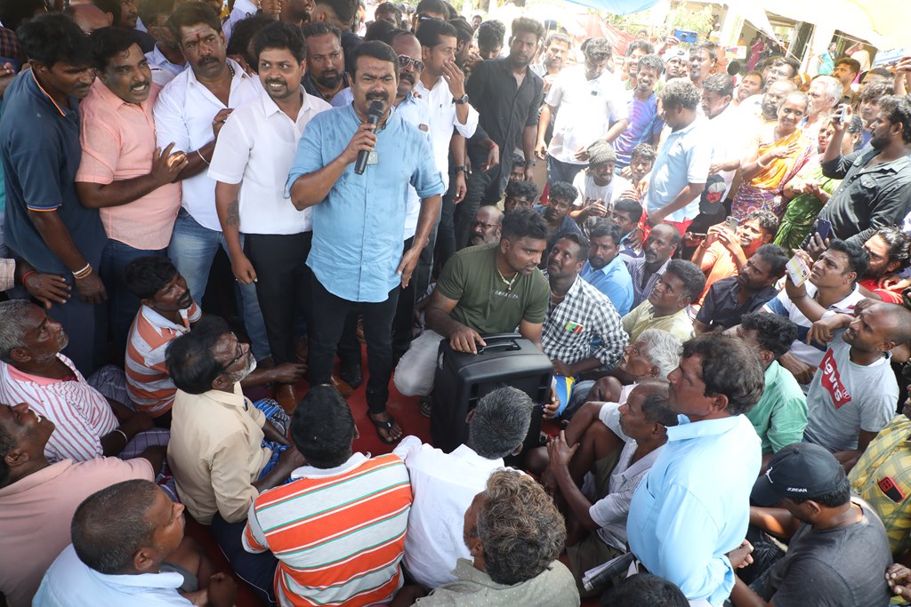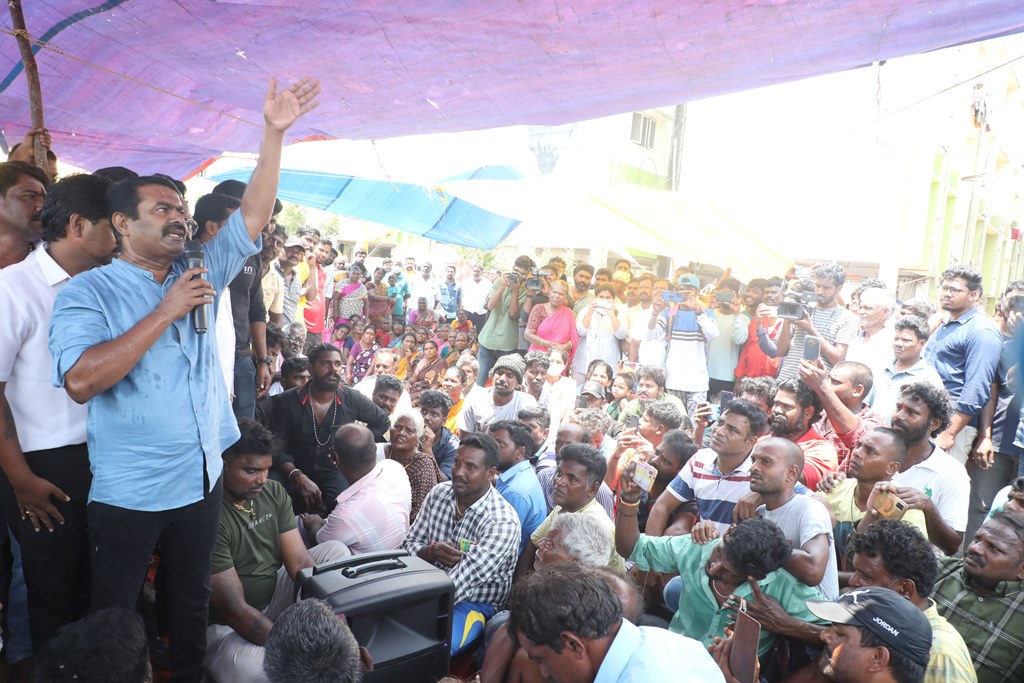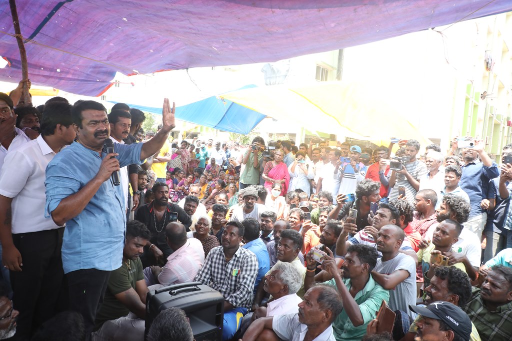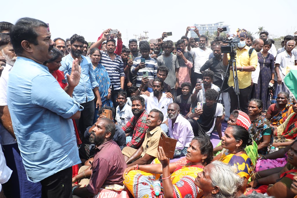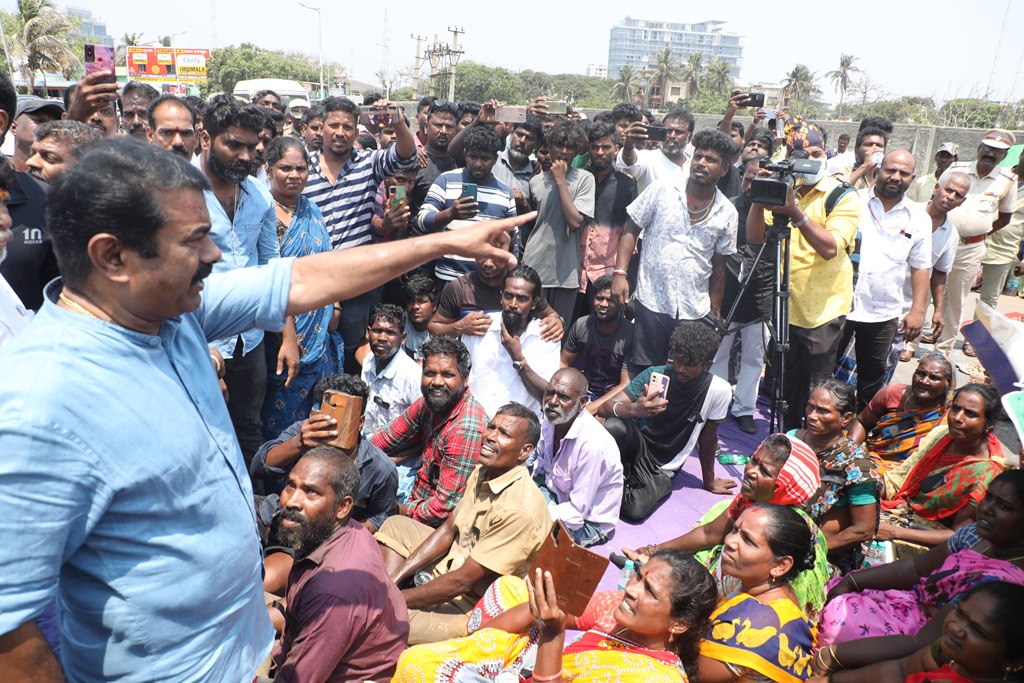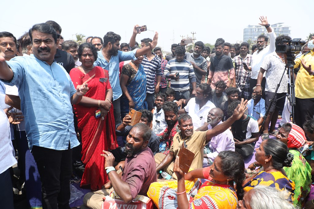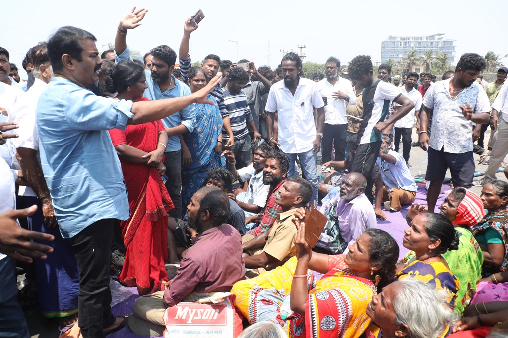 பூர்வகுடிகளான மீனவ மக்களின் வாழ்வாதாரத்தை அழித்து, அவர்களை தலைநகரை விட்டே வெளியேற்றும் சூழ்ச்சியாக, சென்னை மெரினா கடற்கரையில் கலங்கரை விளக்கம் முதல் பட்டினப்பாக்கம் வரையிலான சாலையில் பல ஆண்டுகளாக நடைபெற்று வரும் சிறு மீன் கடைகள், உணவகங்களை ஆக்கிரமிப்பு என்றுகூறி அகற்றும் திமுக அரசின் கொடுங்கோன்மைக்கு எதிராக இரவு-பகலாக தொடர் போராட்டத்தில் ஈடுபட்டுவருகின்றனர்.