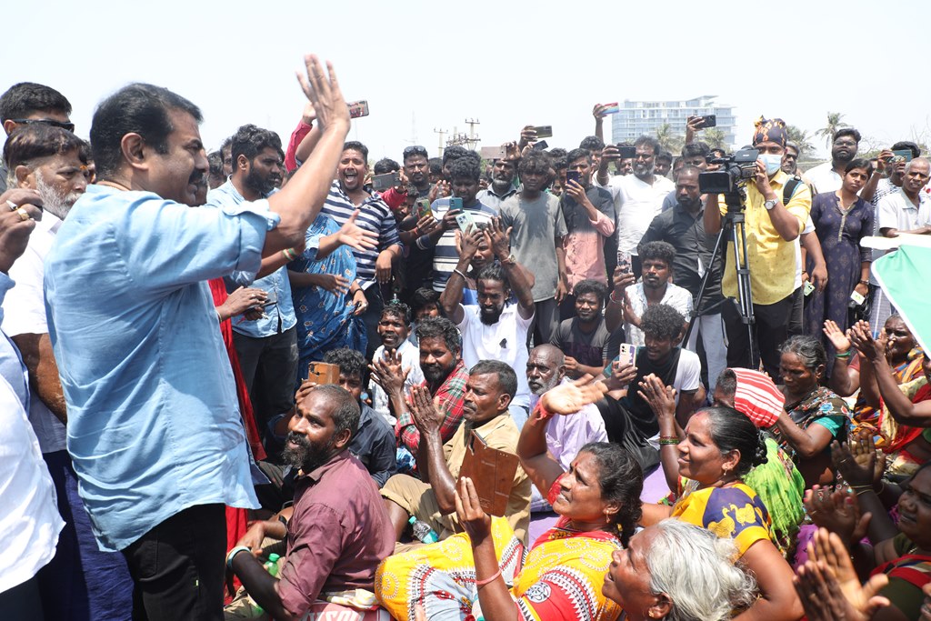மீனவச் சொந்தங்களின் வாழ்வாதார உரிமைப் போராட்டத்திற்கு முழுமையாக ஆதரவளித்து, துணை நிற்கும் விதமாக, நாம் தமிழர் கட்சி சார்பாக தலைமை ஒருங்கிணைப்பாளர் செந்தமிழன் சீமான் அவர்கள் இன்று 18-04-2023 கலங்கரை விளக்கம் பின்புறம் மற்றும் நொச்சிக்குப்பம் பகுதியில் உள்ள போராட்டக்களத்திற்கு நேரில் சென்று, பாதிக்கப்பட்ட மீனவ மக்களைச் சந்தித்து, கோரிக்கைகளைக் கேட்டறிந்தார்.
