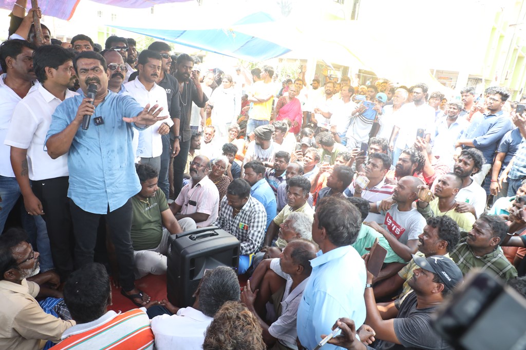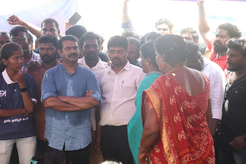 ஆக்கிரமிப்பு என்றுகூறி கடற்கரையோர கடைகள் அகற்றம் – மீனவ மக்களின் வாழ்வாதாரப் போராட்டக்களத்தில் சீமான் பங்கேற்பு