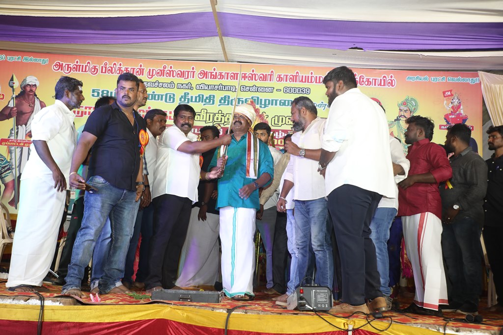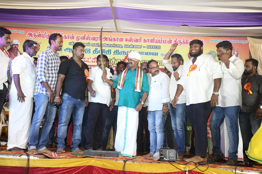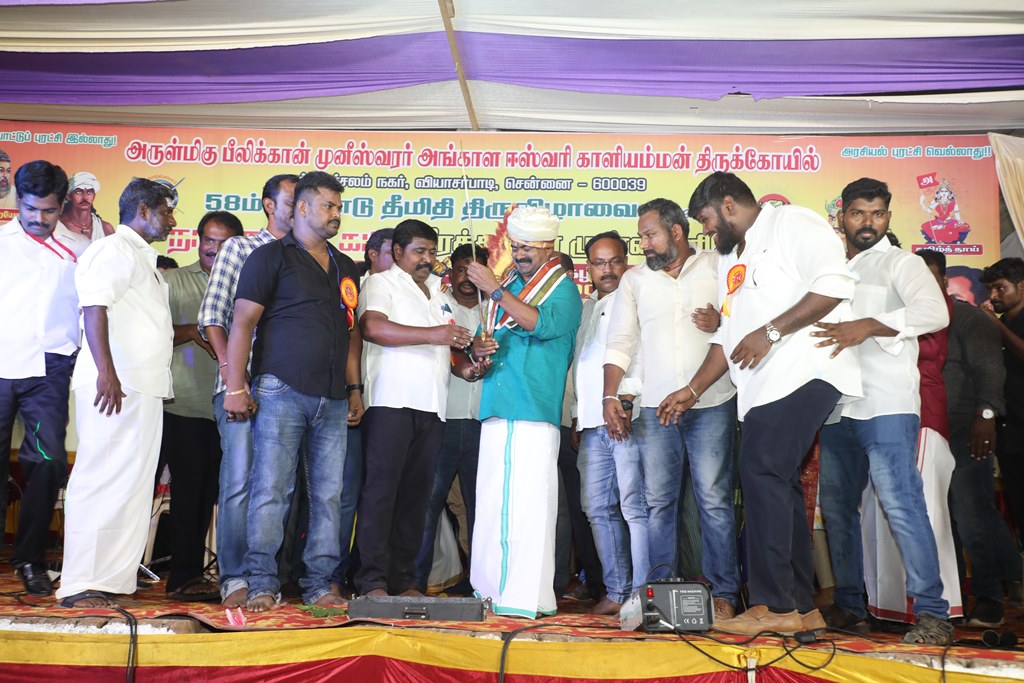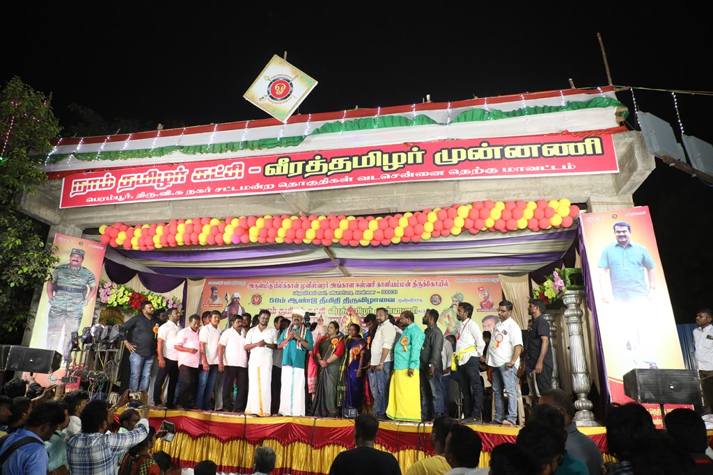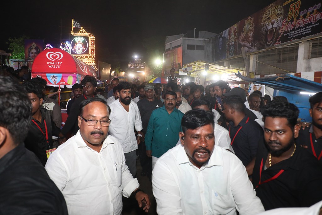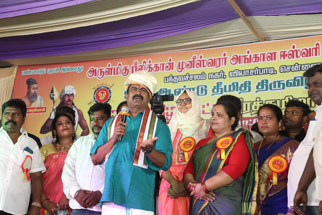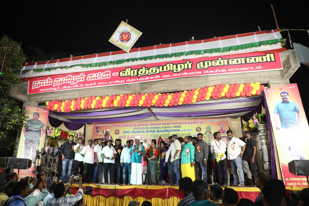 சென்னை, வியாசர்பாடி, பக்தவச்சலம் நகரில் அமைந்துள்ள அருள்மிகு பீலிக்கான் முனிஸ்வரர் அங்காள ஈஸ்வரி காளியம்மன் திருக்கோயிலில் நடைபெறும் 58ஆம் ஆண்டு தீமிதி திருவிழாவை முன்னிட்டு, நாம் தமிழர் கட்சி – வடசென்னை தெற்கு மாவட்டம் மற்றும் வீரத்தமிழர் முன்னணி சார்பாக