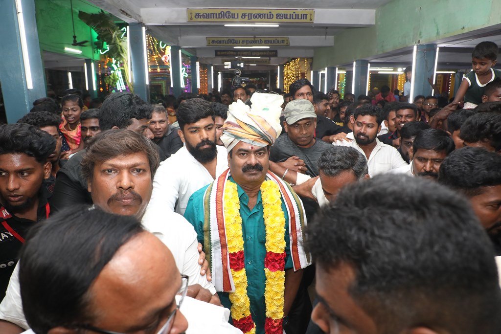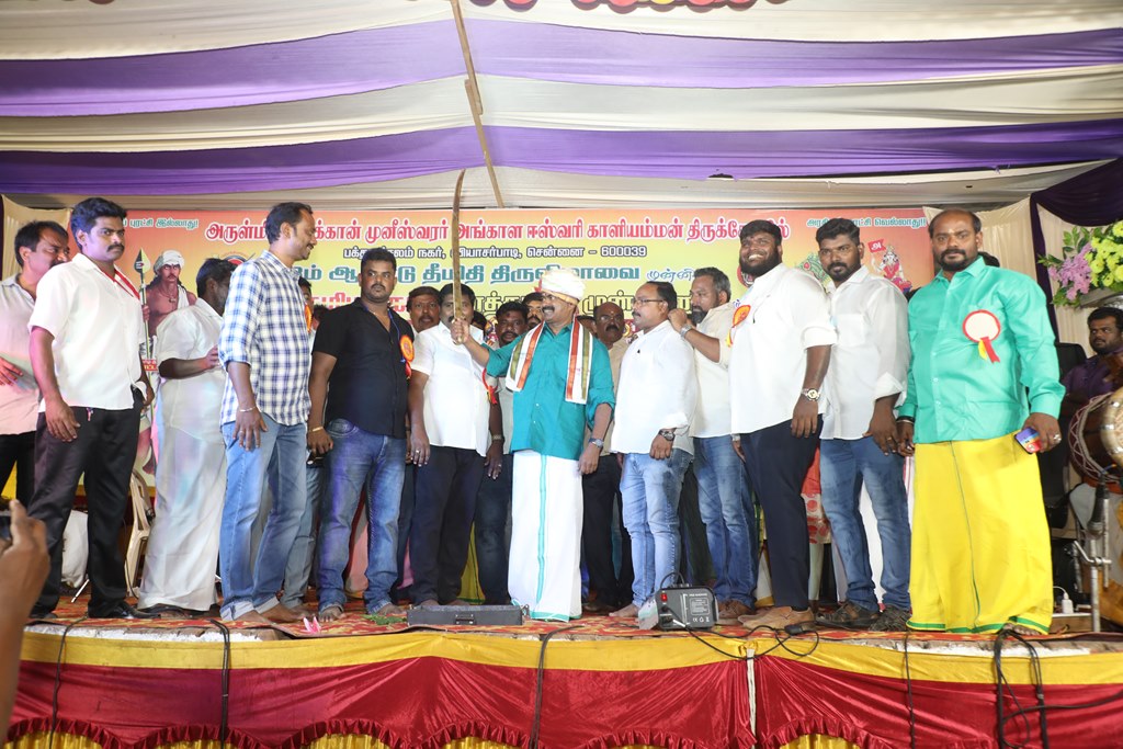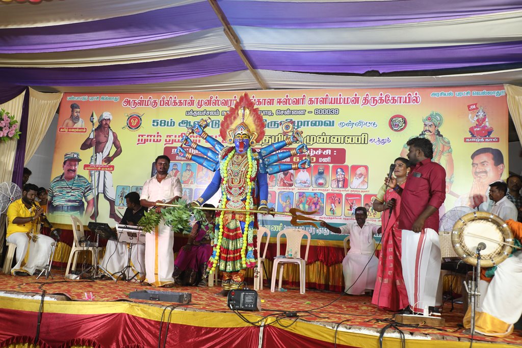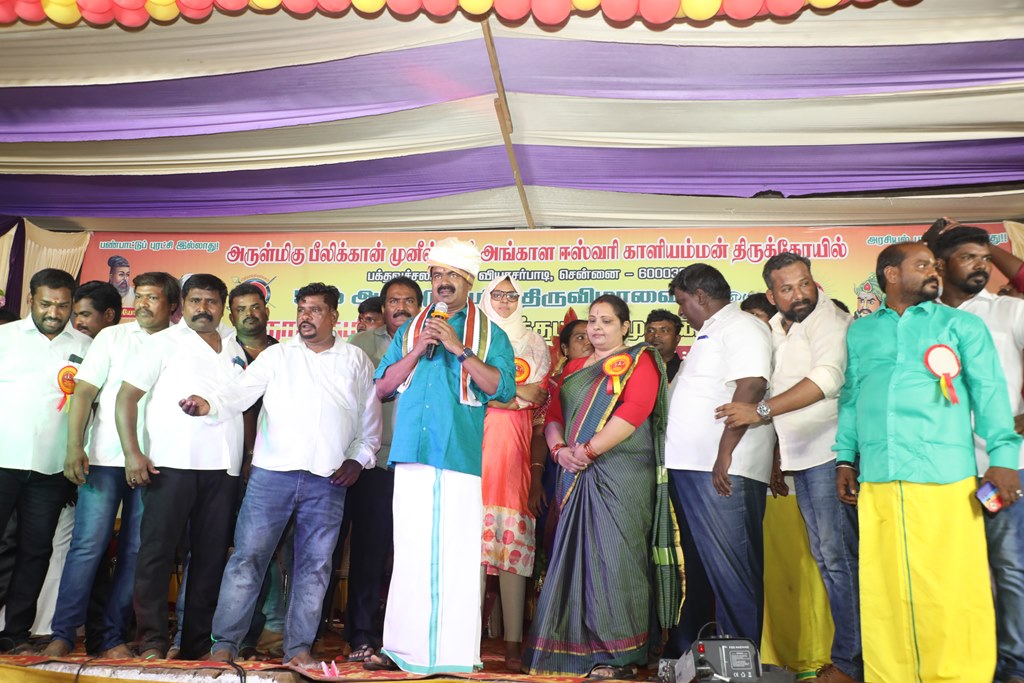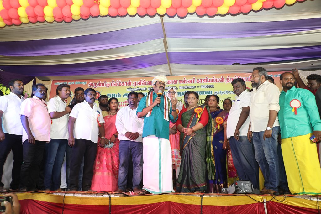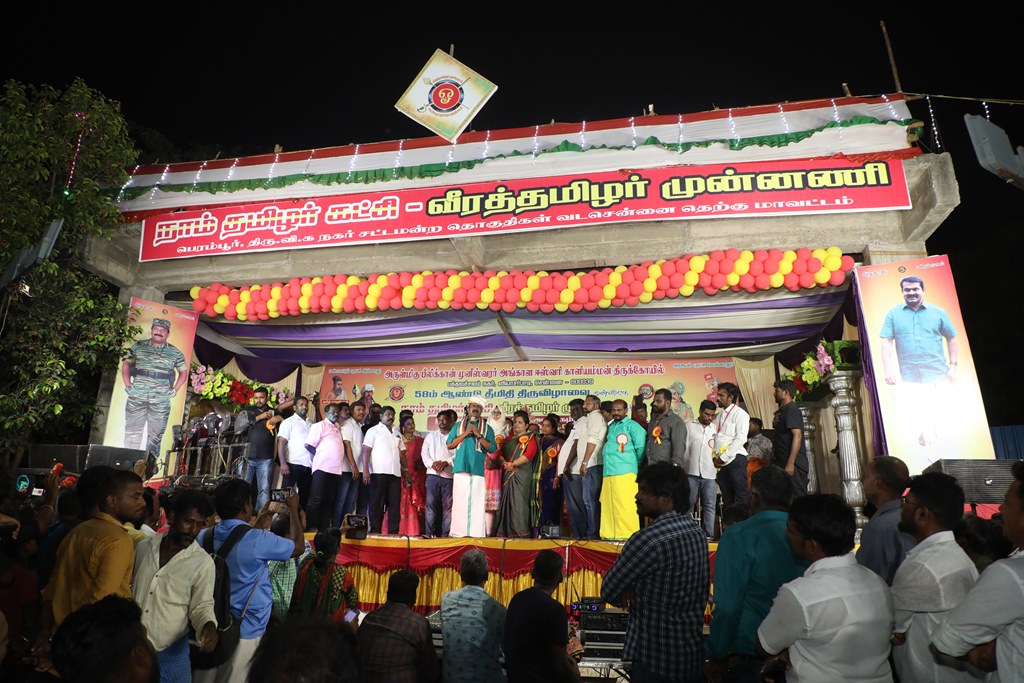 சென்னை, வியாசர்பாடி, பக்தவச்சலம் நகரில் அமைந்துள்ள அருள்மிகு பீலிக்கான் முனிஸ்வரர் அங்காள ஈஸ்வரி காளியம்மன் திருக்கோயிலில் நடைபெறும் 58ஆம் ஆண்டு தீமிதி திருவிழாவை முன்னிட்டு, நாம் தமிழர் கட்சி – வடசென்னை தெற்கு மாவட்டம் மற்றும் வீரத்தமிழர் முன்னணி சார்பாக