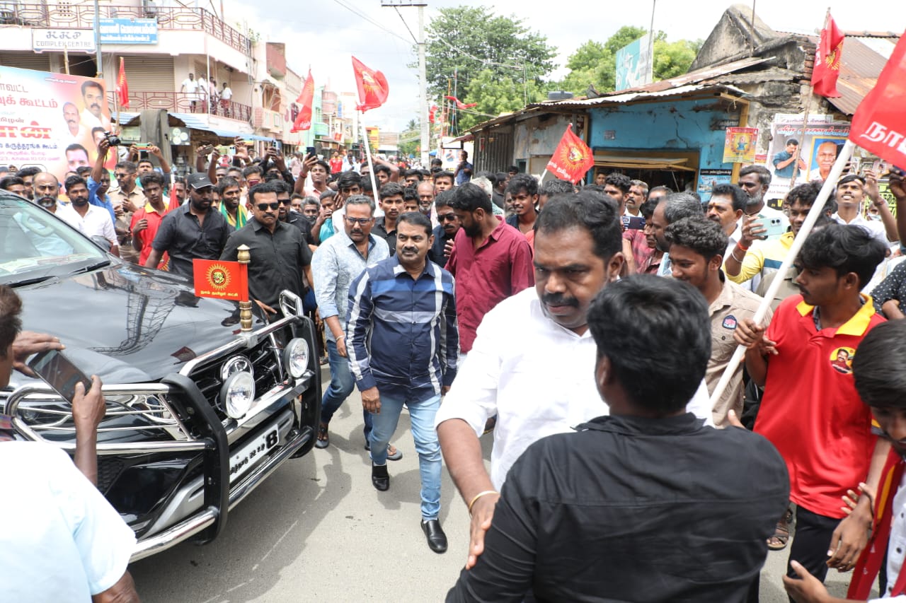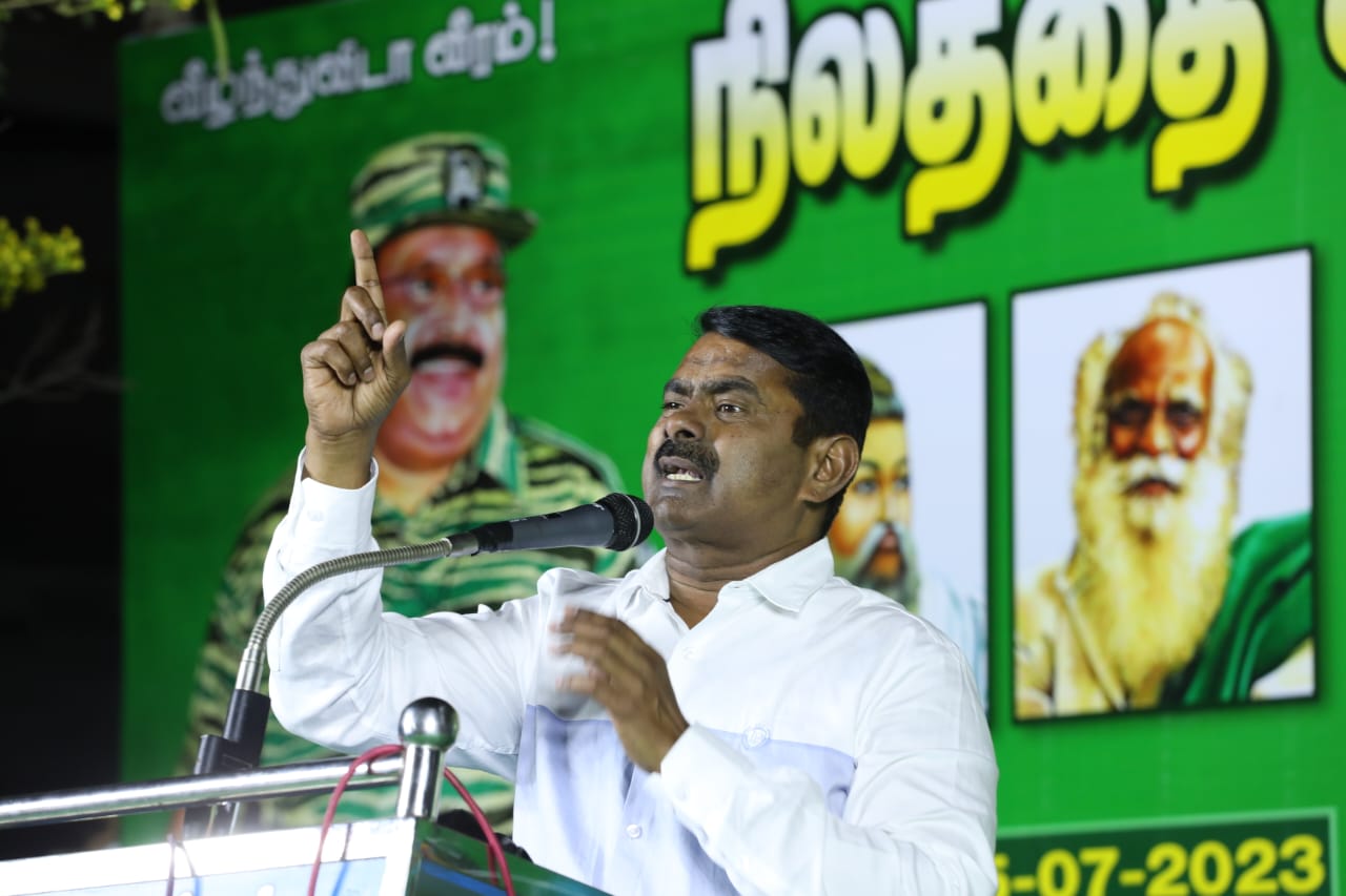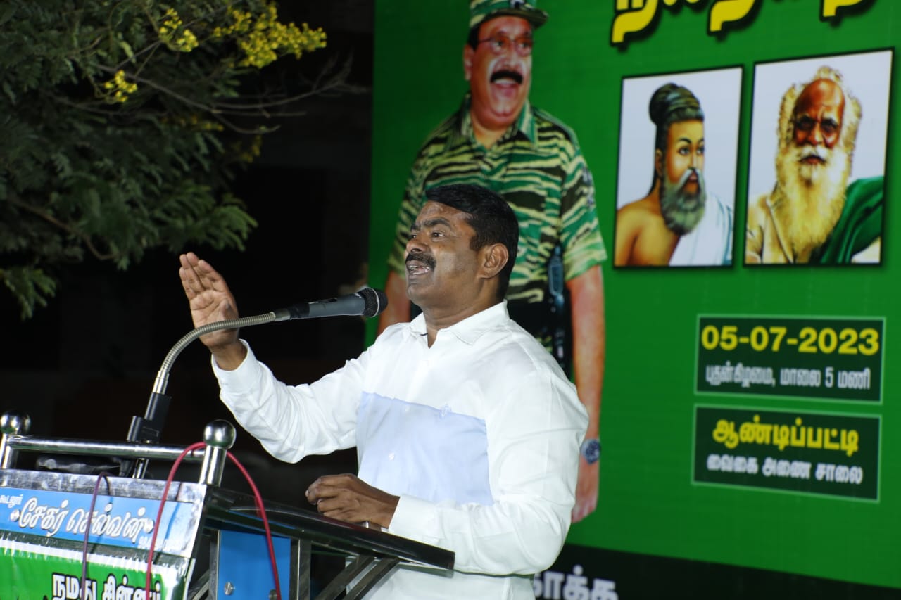 05.07.2023 அன்று தேனி மாவட்டம், ஆண்டிப்பட்டி வைகை அணை சாலையில் நாம் தமிழர் கட்சி சார்பாக தலைமை ஒருங்கிணைப்பாளர் செந்தமிழன் சீமான் அவர்களின் தலைமையில் ‘நிலத்தை இழந்தால் பலத்தை இழப்போம்..!’ என்ற தலைப்பில் மாபெரும் பொதுக்கூட்டம் பேரெழுச்சியாக நடைபெற்றது.