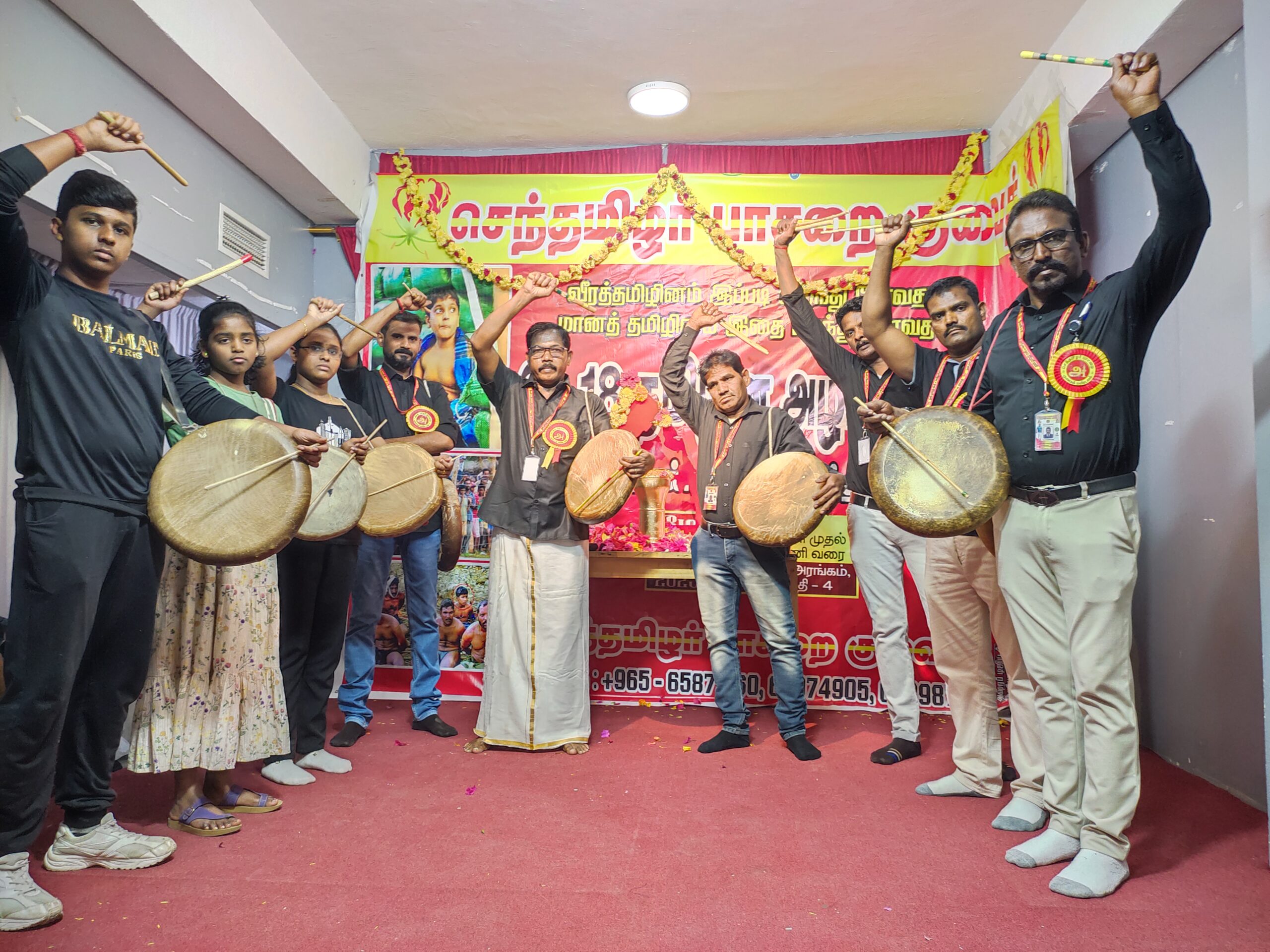 # செந்தமிழர் பறையிசைக் குழுவினரின் பறையிசை, அரங்கம் அதிர முழங்கப்பட்டது.